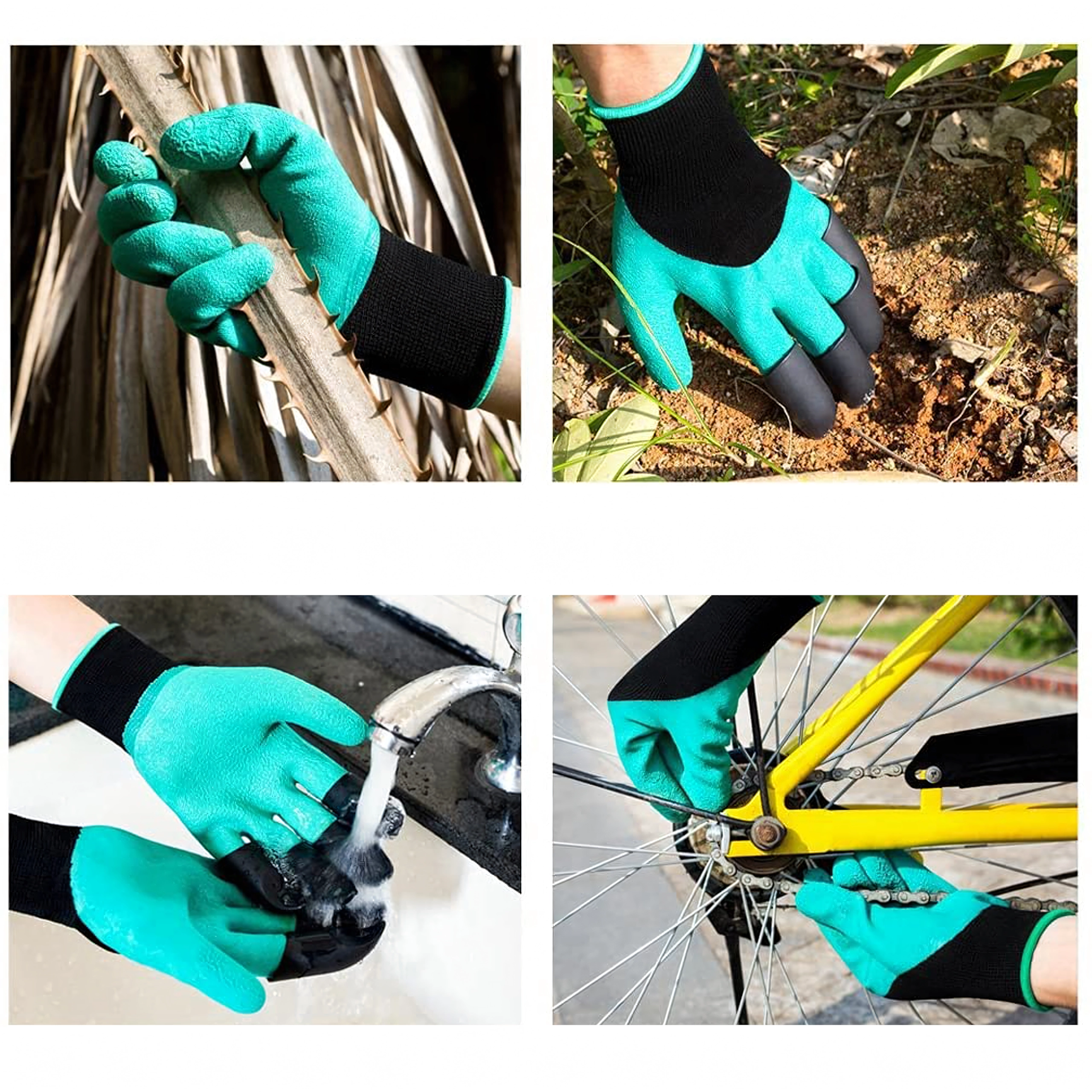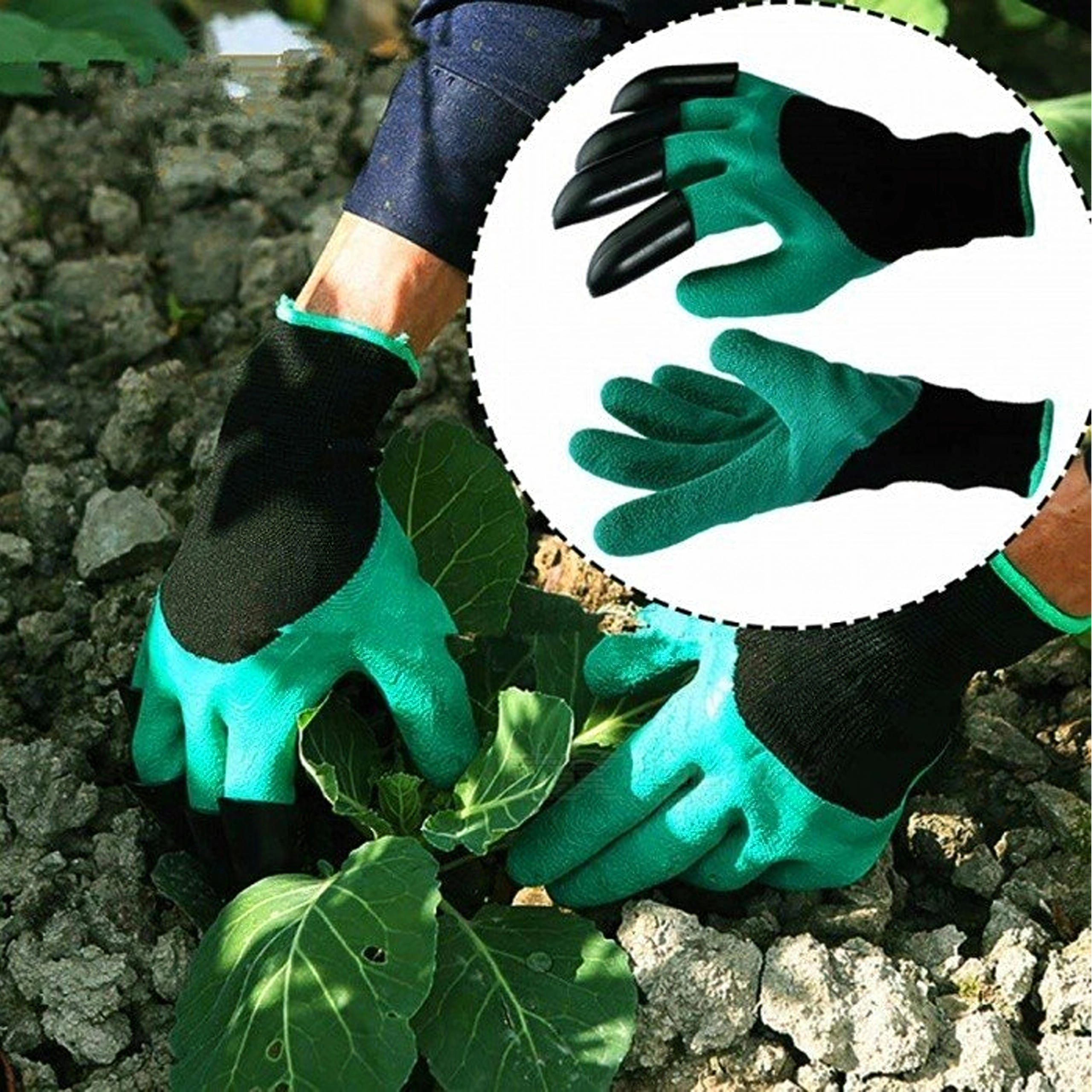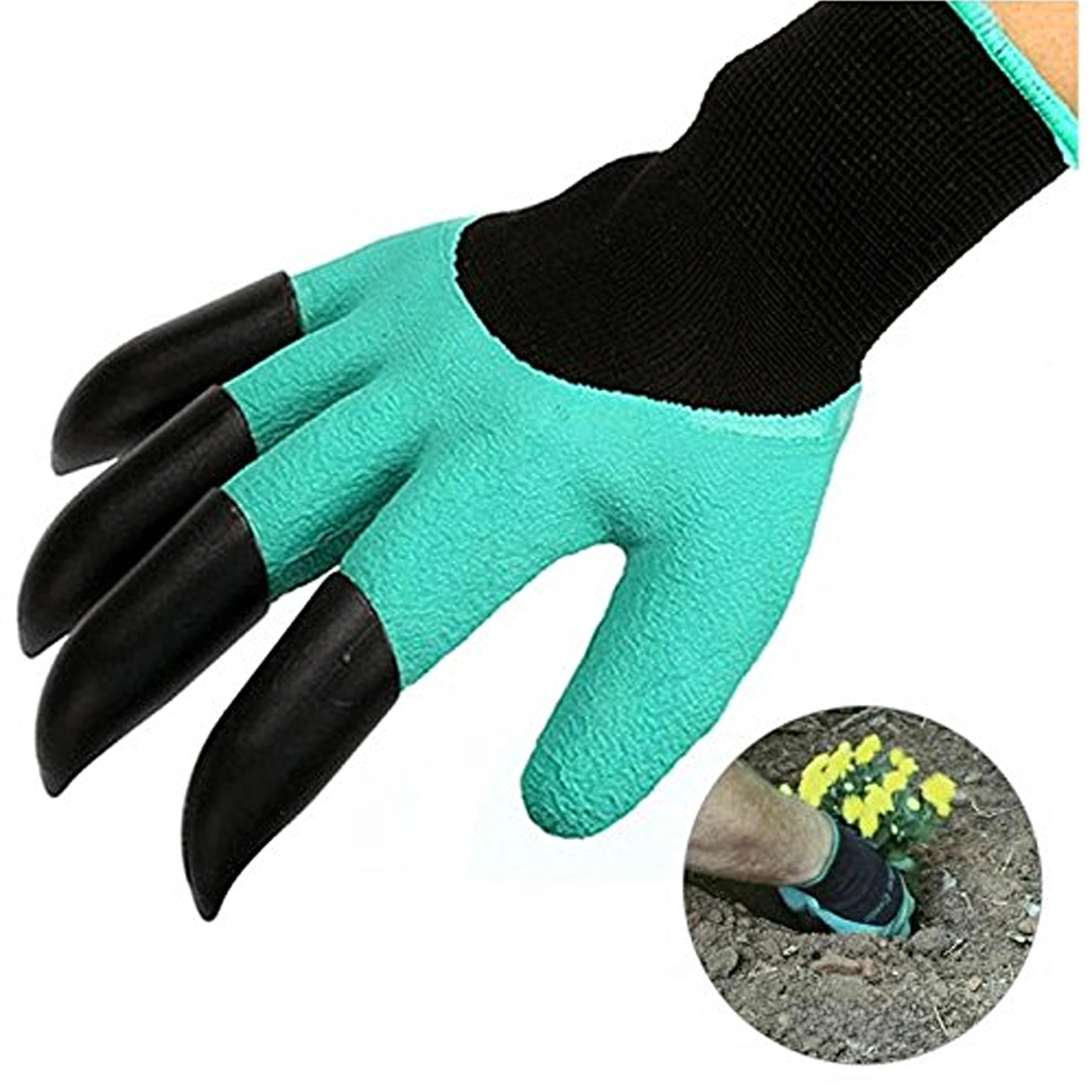 A beépített műanyag hegyek az ujjakon pillanatok alatt segítenek ültetőgödröt készíteni, lazítani a talajt és összegyűjteni az apró szennyeződéseket külön szerszám nélkül.