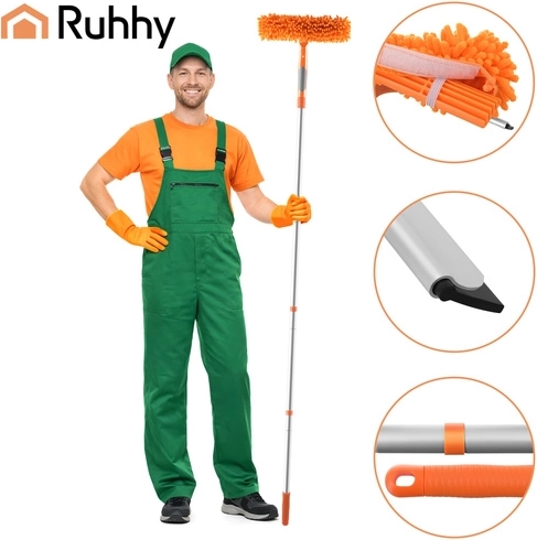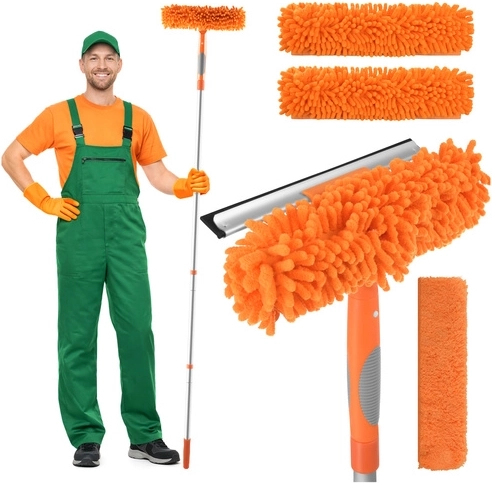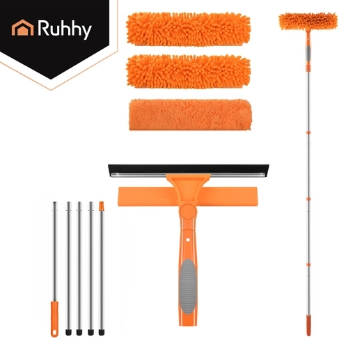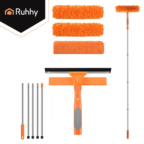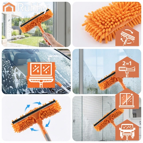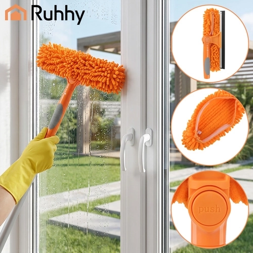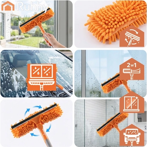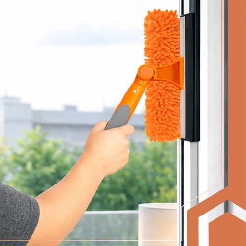 A RUHHY 3 az 1-ben ablaktisztító univerzális segítőtárs otthonra, autóhoz és teraszra. A könnyű alumínium teleszkópos nyél akár 1,8 m-ig hosszabbítható, így biztonságosan eléred az ablakok felső peremeit és a nagy üvegfelületeket. A 180°-ban forgatható csuklóval függőlegesen és vízszintesen is tisztíthatsz, és könnyedén eljutsz a sarkokba.