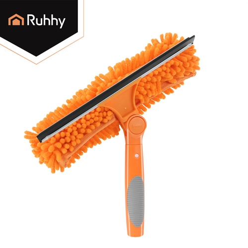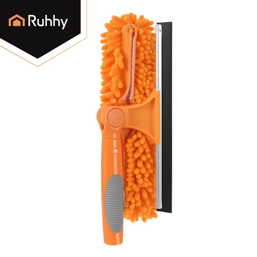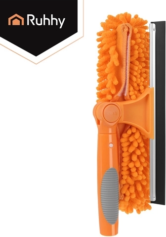Először a puha mikroszál fellazítja a szennyeződéseket, majd a gumilehúzóval eltávolítod a vizet a kristálytiszta végeredményért.