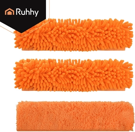 A kétoldalas fej a nedvszívó mikroszálas mosófelületet és a gumilehúzót ötvözi a gyors, csíkmentes vízlehúzáshoz. Három cserélhető huzat (2× chenille, 1× sima coral velvet) növeli a tisztítás hatékonyságát a szennyeződés típusától függően, és mosható, újrahasználható.