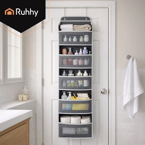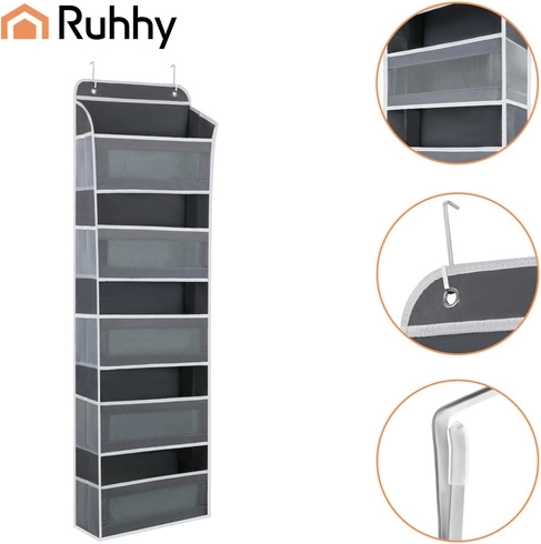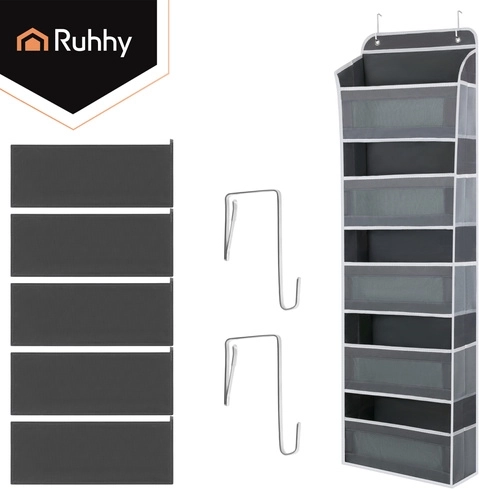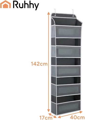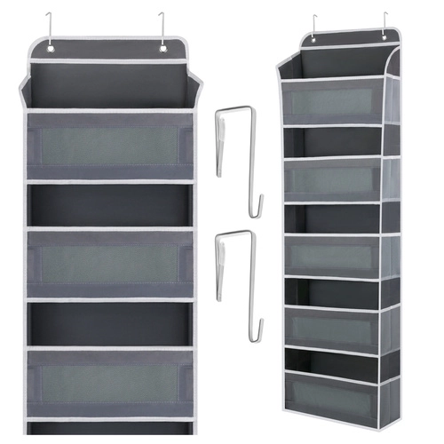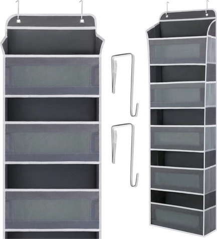 Egyszerűen akassza az ajtóra a fém akasztók segítségével, és azonnal 5 polcot és oldalzsebeket kap a hatékony rendszerezéshez.