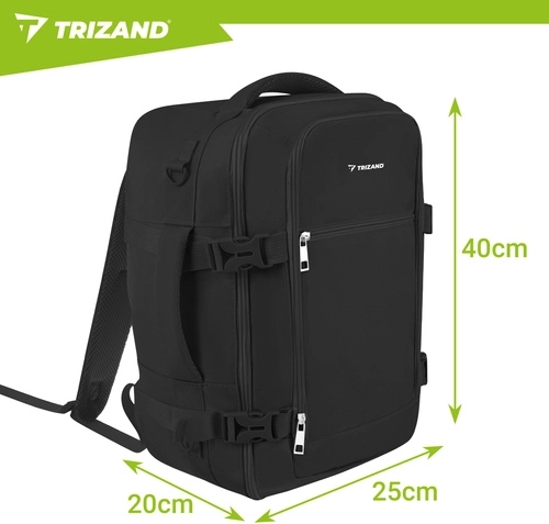 Okos kézipoggyászt keres, amely megfelel sok légitársaság korlátainak, miközben mindent rendben tart? Ez a fekete TRIZAND hátizsák a kompakt 40 × 25 × 20 cm-es méretet praktikus belső tagolással és kényelmes viseléssel ötvözi. A körben, bőröndhöz hasonló nyitás felgyorsítja a pakolást, a belső hevederek pedig rögzítik a ruhákat.