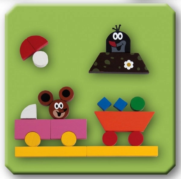 Szórakoztató készlet fából készült, mágneses elemekkel a Kisvakond motívumaival kis alkotók számára. Fejleszti a gyerekek finommotorikáját, kreativitását és fantáziáját. Minőségi cseh gyártás, amely megfelel az EU biztonsági előírásainak. 3 éves kortól ajánlott.