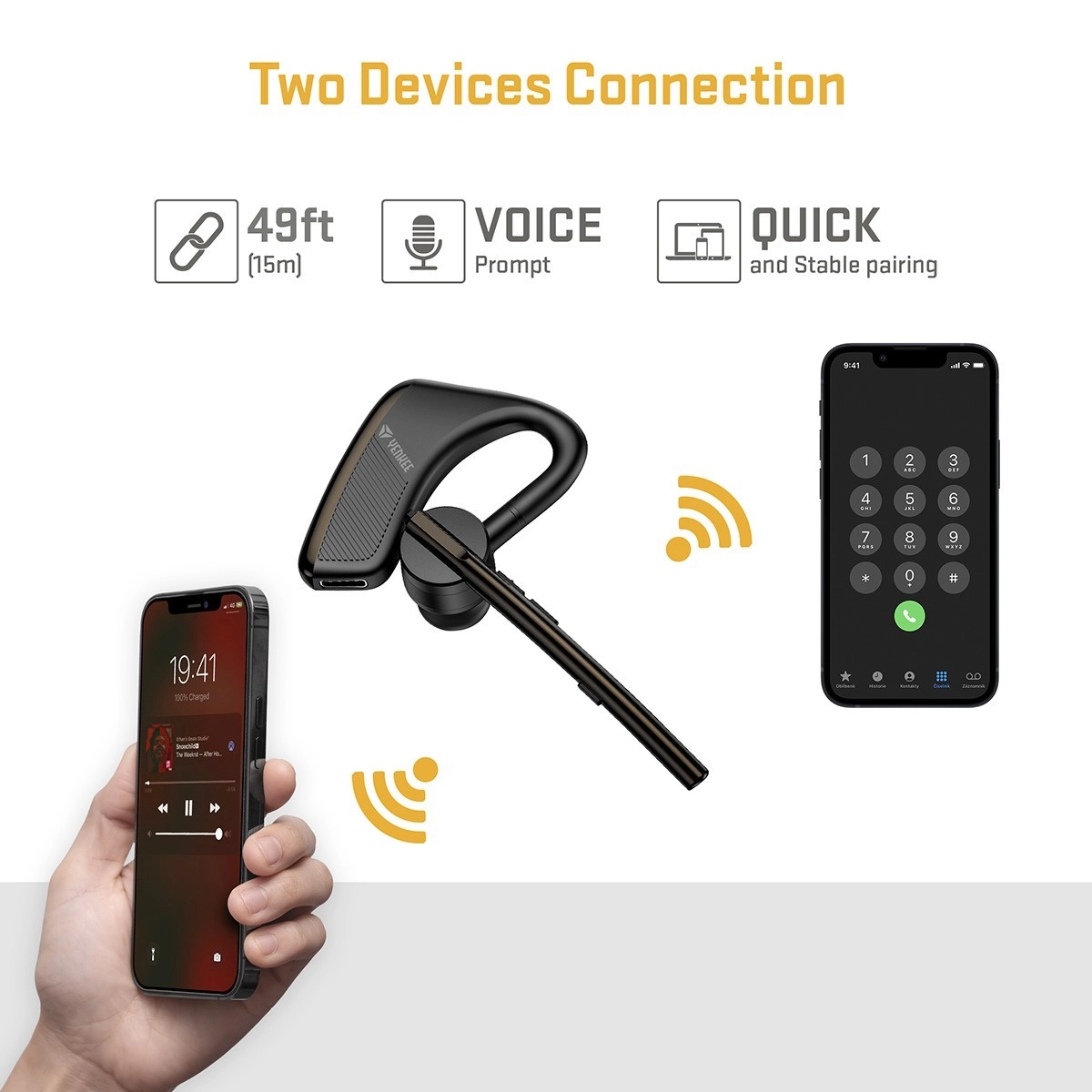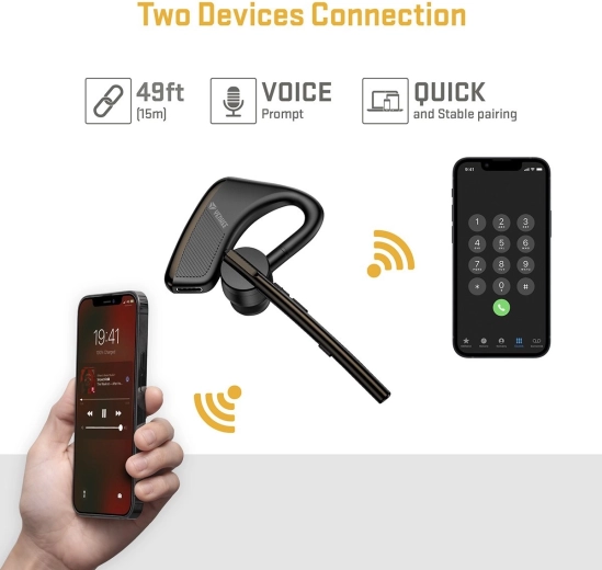 A könnyű és kényelmes YHF F20BK vezeték nélküli headset Bluetooth 5.2-t, kettős mikrofonos zajcsökkentést és hosszú üzemidőt kínál. A két egyidejűleg csatlakoztatott eszköz támogatása és a forgatható mikrofon a jobb és bal fülhöz egyaránt tiszta hívásokat és egyszerű vezérlést biztosít a multifunkciós gombokkal – ideális vezetéshez és kézhasználat nélküli munkához.
