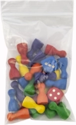 A csomagban két standard dobókocka is található, így minden adott az azonnali játékhoz. A 7×13 cm-es kompakt, zipzáras tasak egyben tartja a figurákat és a kockákat, és utazáshoz is praktikus.