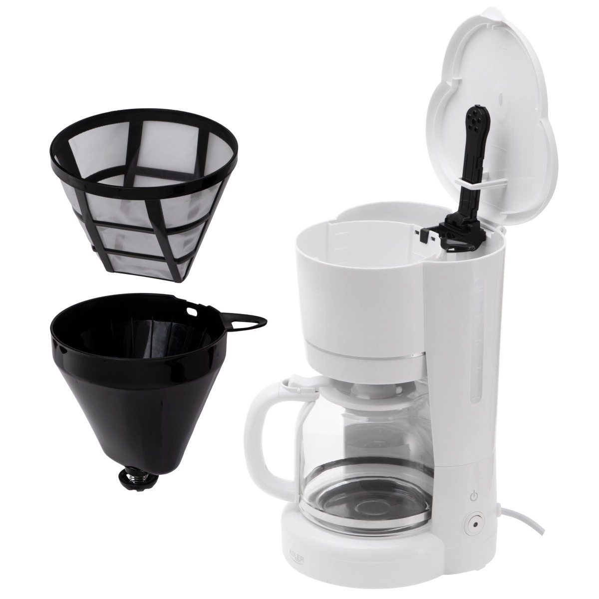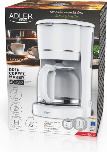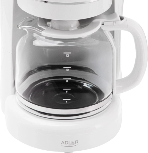 Élvezze a frissen főzött kávé illatát a ADLER AD 4383 elegáns fehér filteres kávéfőzővel. 1,5 l űrtartalommal, akár 12 csészéhez, egyenletes csepegtetéssel a teljes ízért, üvegkannával ergonomikus fogantyúval, csepegésgátló funkcióval, vízszintjelzővel és melegentartó főzőlappal rendelkezik. A kivehető nejlonszűrőnek köszönhetően nem kell papírszűrőt vásárolni, az automatikus kikapcsolás pedig a biztonságról és az energiatakarékosságról gondoskodik.