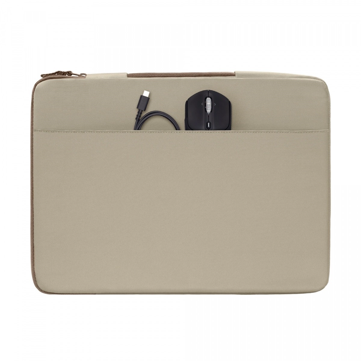 A praktikus első zsebben elfér az egér, kábelek vagy a telefon, így a nélkülözhetetlen tartozékok mindig kéznél vannak. A minimalista, lapos profil és a rejtett fogantyú kényelmes kézben hordást és könnyű behelyezést biztosít a hátizsákba. A tok emellett környezetkímélő – újrahasznosított anyagokból készül, FSC tanúsítvánnyal rendelkező csomagolásban.