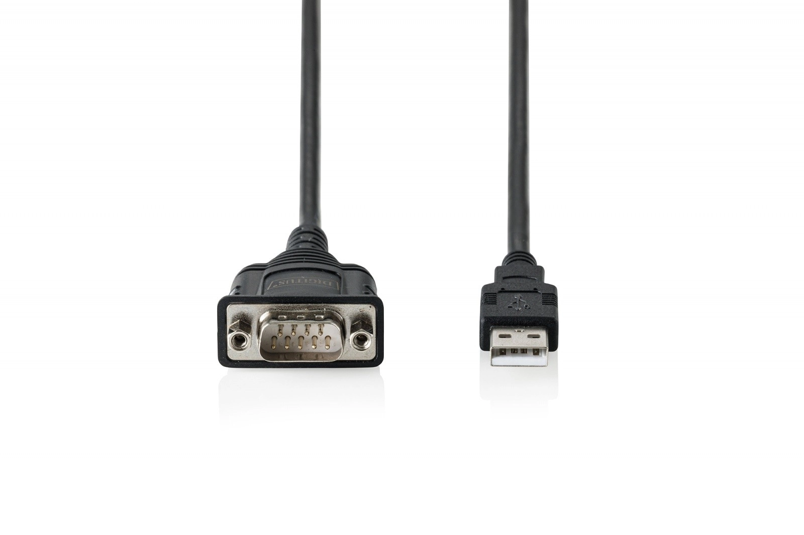 - USB‑A (dugó) – DB9 (aljzat) menetes anyákkal
