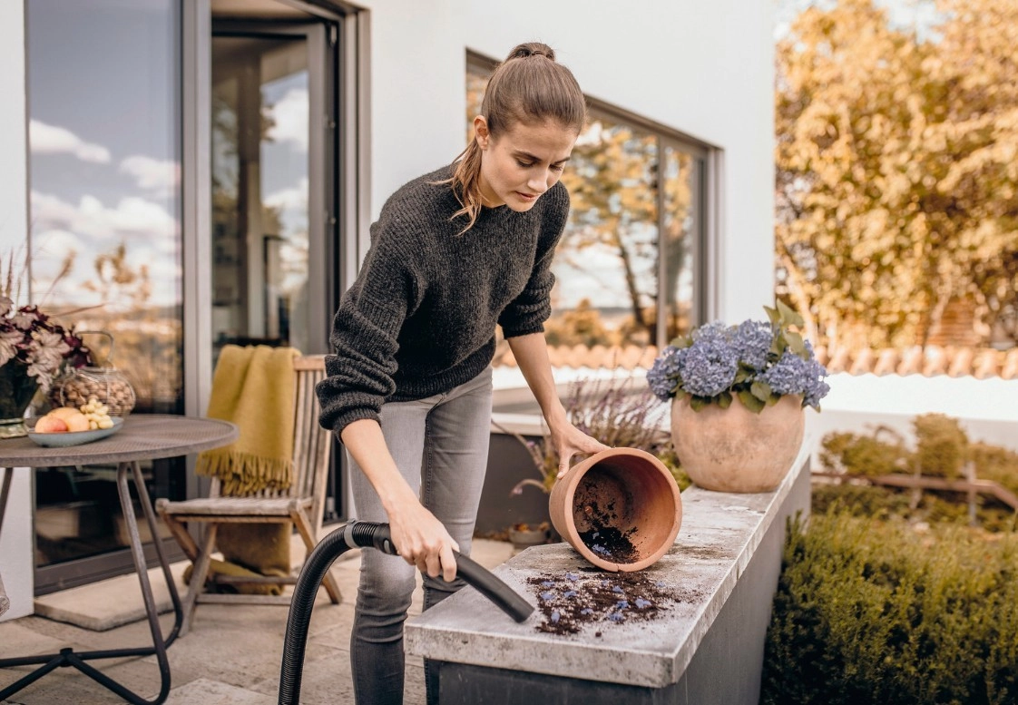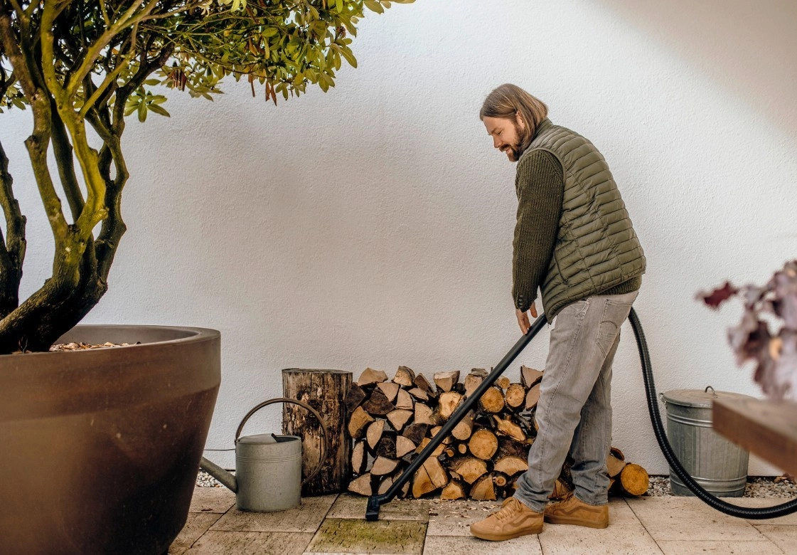 A kompakt felépítésnek, a 4 m-es tápkábelnek és a 2 m-es szívótömlőnek köszönhetően mindenhova elér, ahova szükséges. A praktikus tartók a fejekhez, a kábeltartó kampó és a tömlő készülékfejre akasztásának lehetősége helytakarékos és mindent kéznél tart. A fúvófunkció ott segít, ahol nem lehet porszívózni – például résekből a levelek és szennyeződések eltávolításánál.