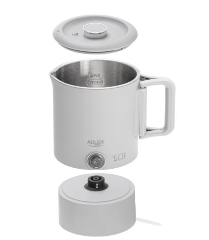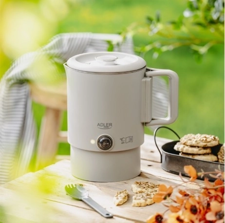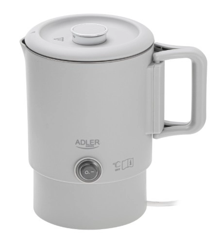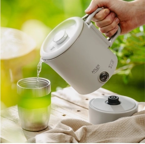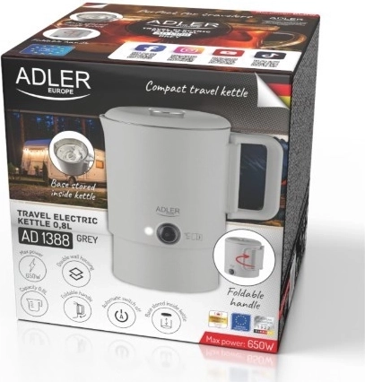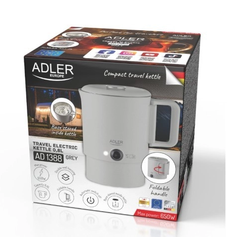 A kompakt ADLER AD 1388 utazó vízforraló 0,8 l űrtartalommal ideális nyaraláshoz, üzleti utakhoz és kempingezéshez. Az összecsukható fogantyúnak, a vízforraló belsejében tárolható talpnak és a dupla falnak köszönhetően a minimális méret biztonságos és gyors vízforralással párosul. A rozsdamentes belső test, az automatikus kikapcsolás, a szárazonfutás elleni védelem és a 360°-ban forgatható talp praktikus társsá teszi minden útra.