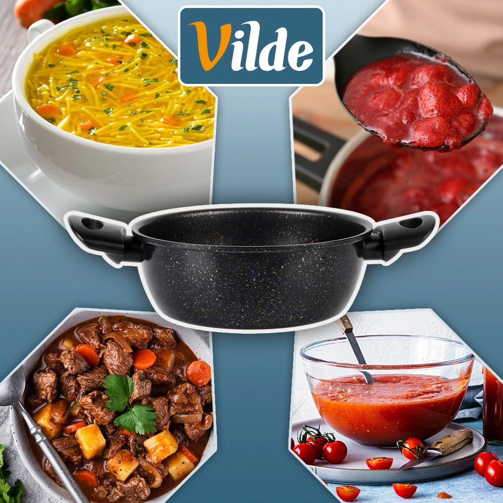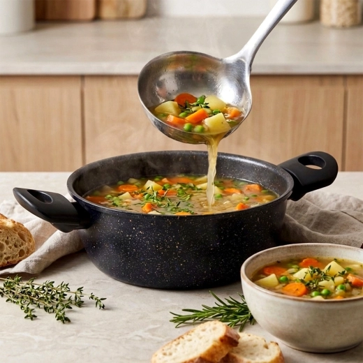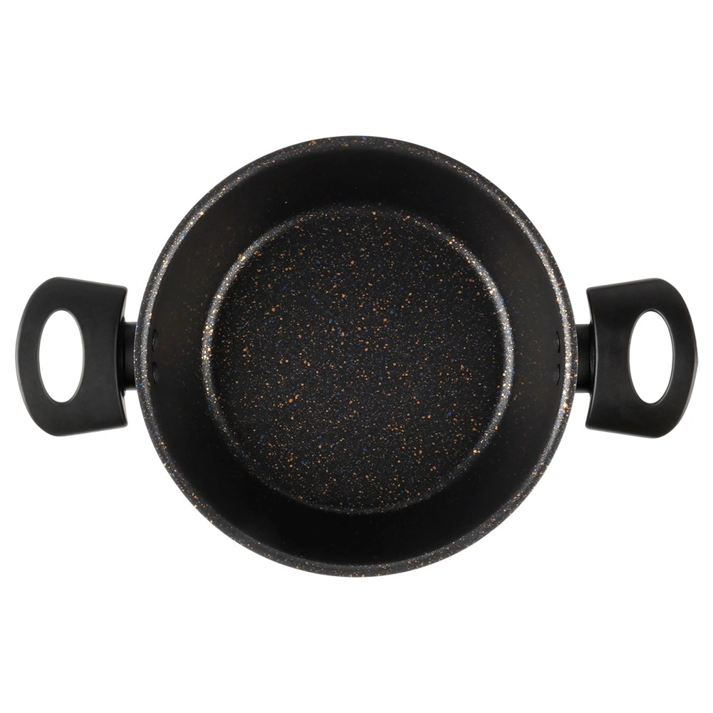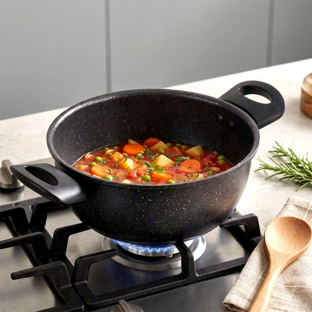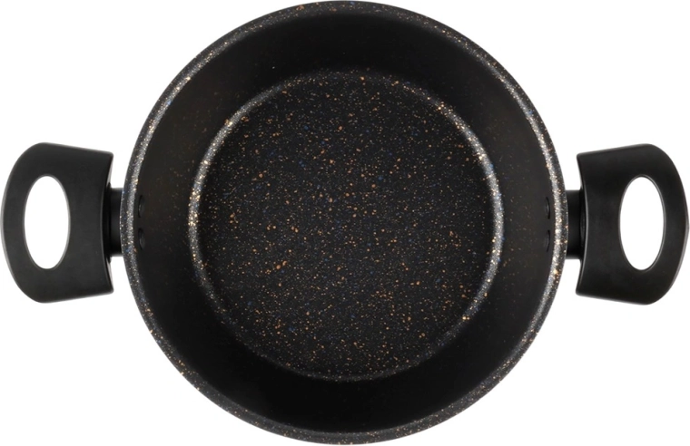Praktikus gránit lábas 2 l űrtartalommal és 20 cm átmérővel, tartós, tapadásmentes felülettel a minimális zsiradékkal történő főzéshez. Az ergonomikus, széles fogantyúk biztonságos kezelést biztosítanak, a lábas gáz-, elektromos és üvegkerámia főzőlapokon használható, és mosogatógépben mosható (indukcióhoz nem alkalmas).