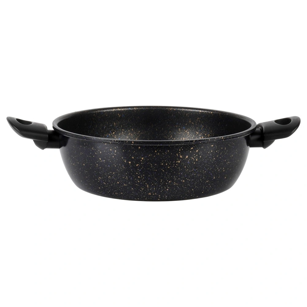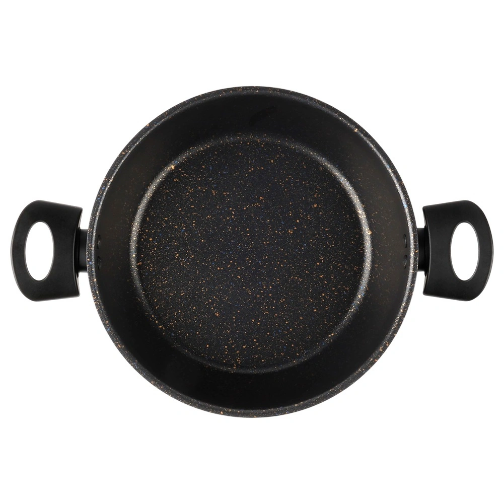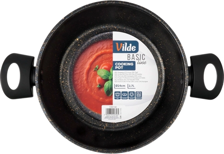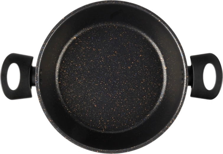 Praktikus, 2,7 l űrtartalmú és 24 cm átmérőjű gránit lábas, ideális mindennapi főzéshez, pároláshoz és melegítéshez. A tapadásmentes gránit bevonatnak köszönhetően minimális zsiradékkal főzhet, egyenletesen melegszik át, és könnyen tisztítható – mosogatógépben mosható. Kompatibilis gáz-, elektromos és üvegkerámia főzőlapokkal (nem indukcióhoz).