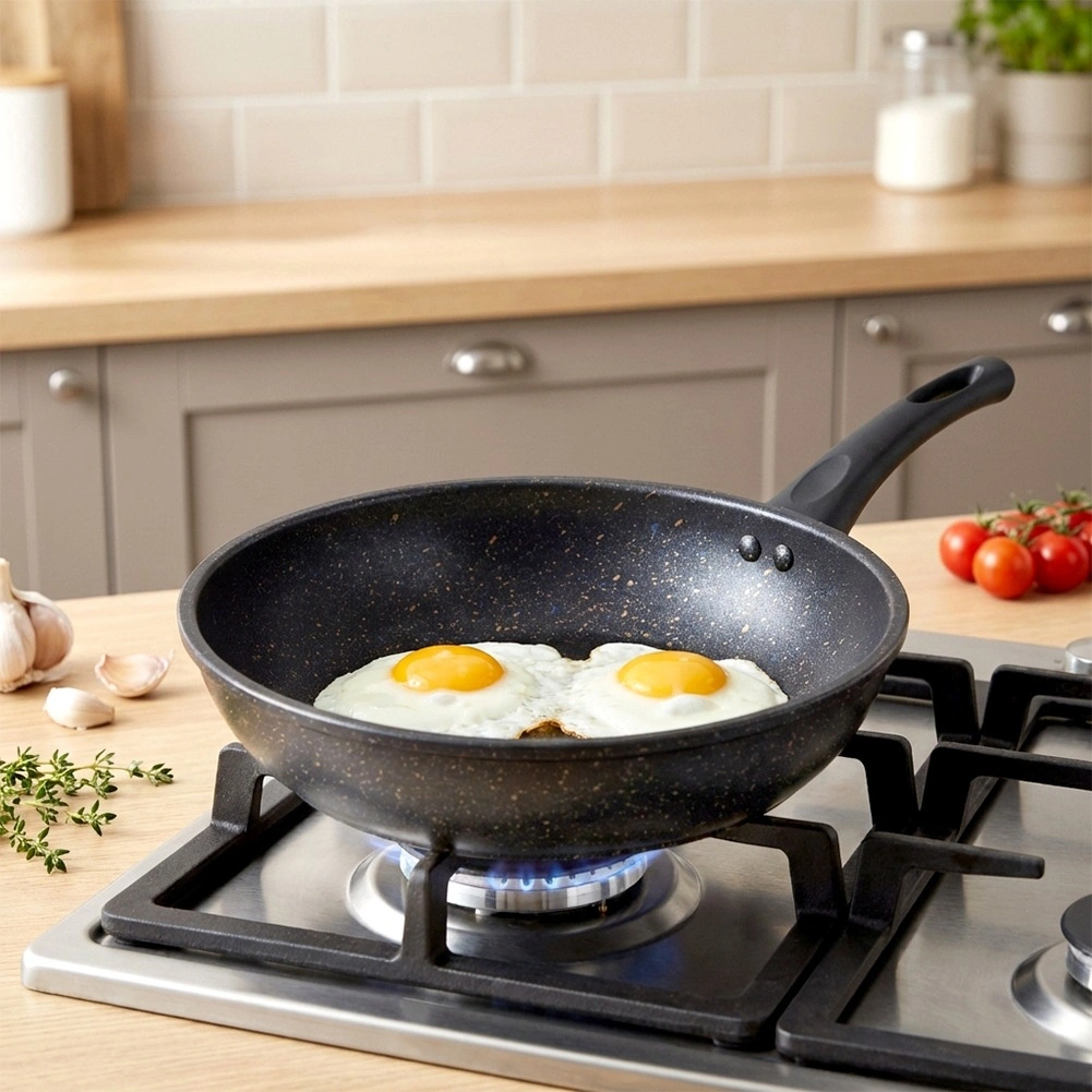 A széles fenék és a minőségi kialakítás egyenletes hőeloszlást biztosít a tökéletesen megsütött tojásokhoz, zöldségekhez és húsokhoz.