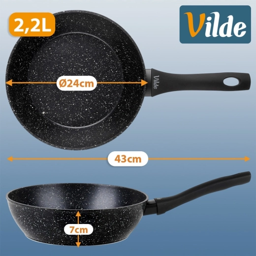 - Praktikus méretek: átmérő 24 cm, serpenyőmagasság 6,8 cm, hossz 43 cm, űrtartalom 2,2 l
