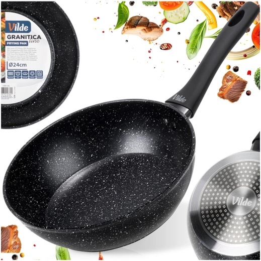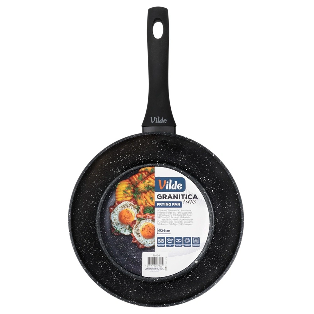 Univerzális, 24 cm átmérőjű gránit serpenyő mindennapi főzéshez. A tapadásmentes gránit bevonatnak köszönhetően ételeit minimális zsiradékkal készítheti el, gyorsan és egyenletesen. Az ergonomikus soft touch fogantyú jól illeszkedik a kézbe és kellemes tapintású. A serpenyő minden tűzhelytípushoz, indukcióhoz is alkalmas, és mosogatógépben mosható.