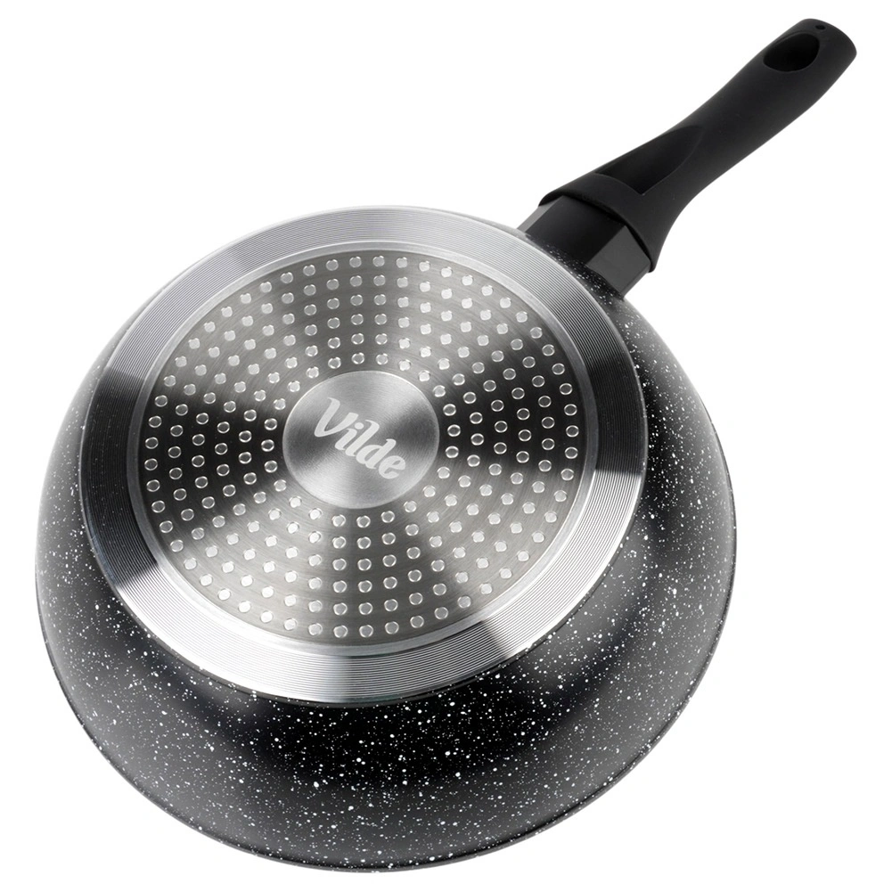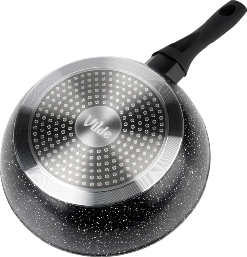 A többrétegű talp és az alumínium test gyorsan és egyenletesen vezeti a hőt, így lerövidíti a főzési időt és csökkenti az energiafogyasztást.