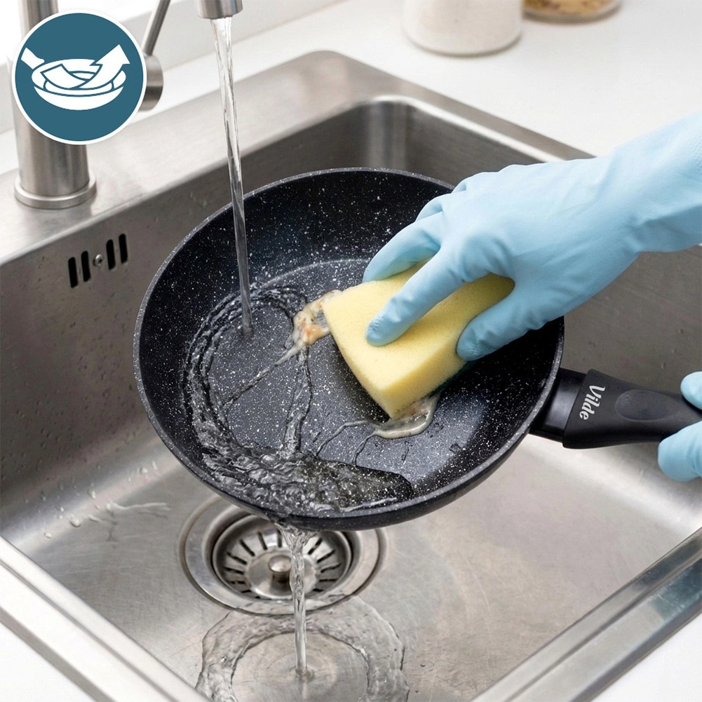 Az ergonomikus, hőálló fogantyú biztos fogást nyújt. Főzés után a serpenyő könnyen elmosható, mosogatógépben is tisztítható.
