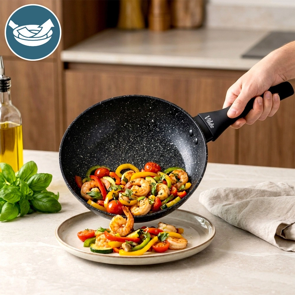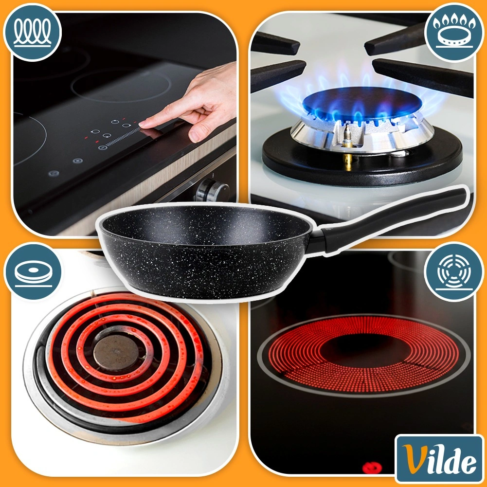 Univerzális kompatibilitásának köszönhetően használható indukciós, gáz-, elektromos és üvegkerámia főzőlapon is. A karbantartás gondtalan – a felület könnyen tisztítható, a serpenyő mosogatógépben mosható.