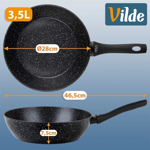 - Átmérő 28 cm, serpenyőmagasság 7,5 cm – elegendő hely családi adagokhoz.