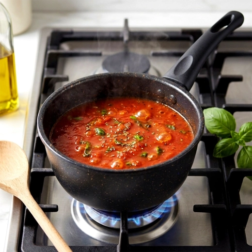 A Basic Line sorozat praktikus lábasa kiváló választás szószok készítéséhez, tej melegítéséhez, vaj olvasztásához vagy hagyma pirításához. A tartós acélötvözet test gránit tapadásmentes réteggel minimálisra csökkenti az odaégést, megkönnyíti a főzést és a tisztítást.