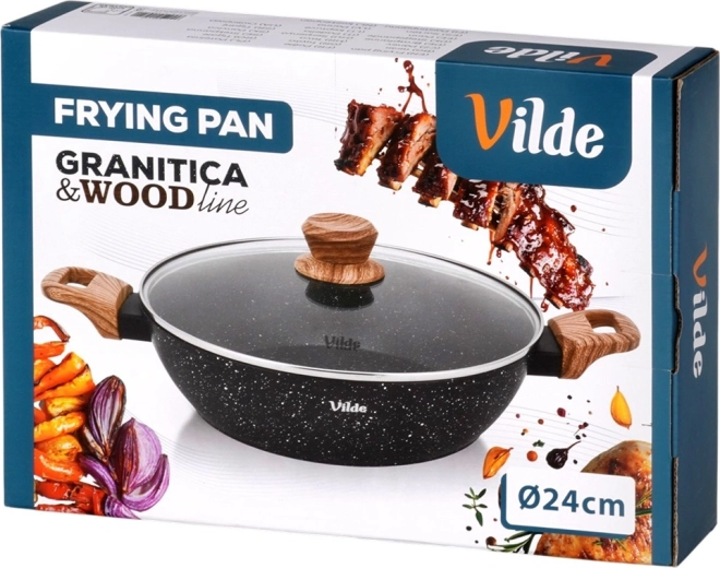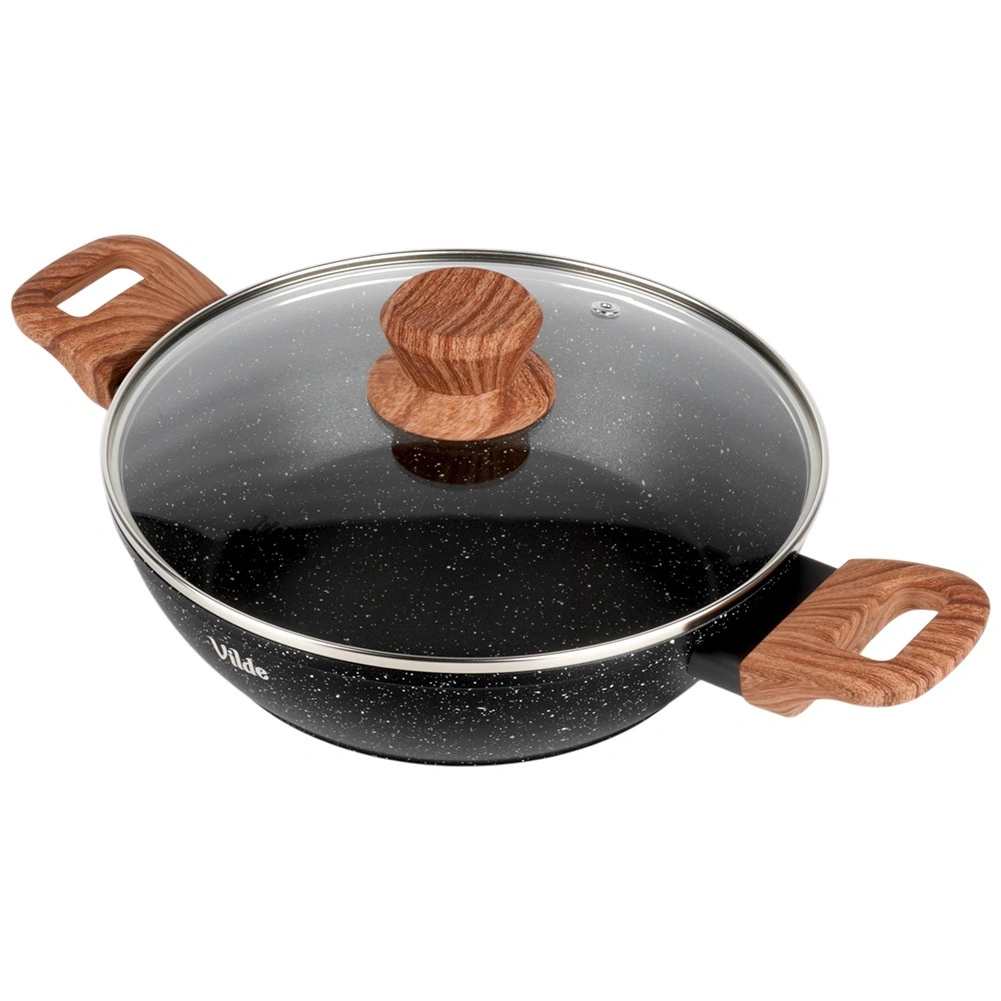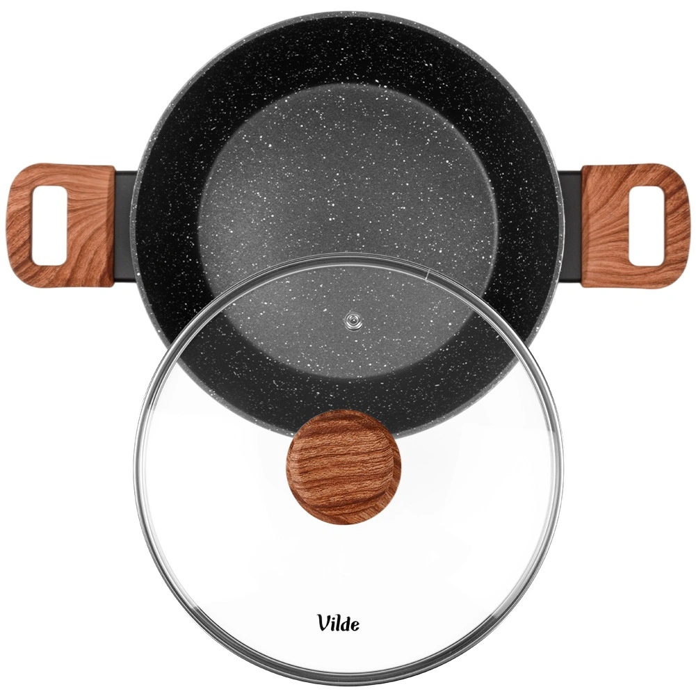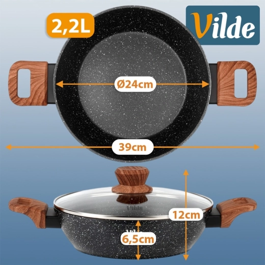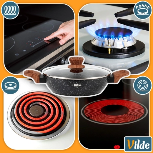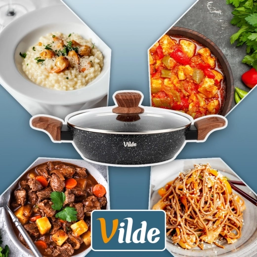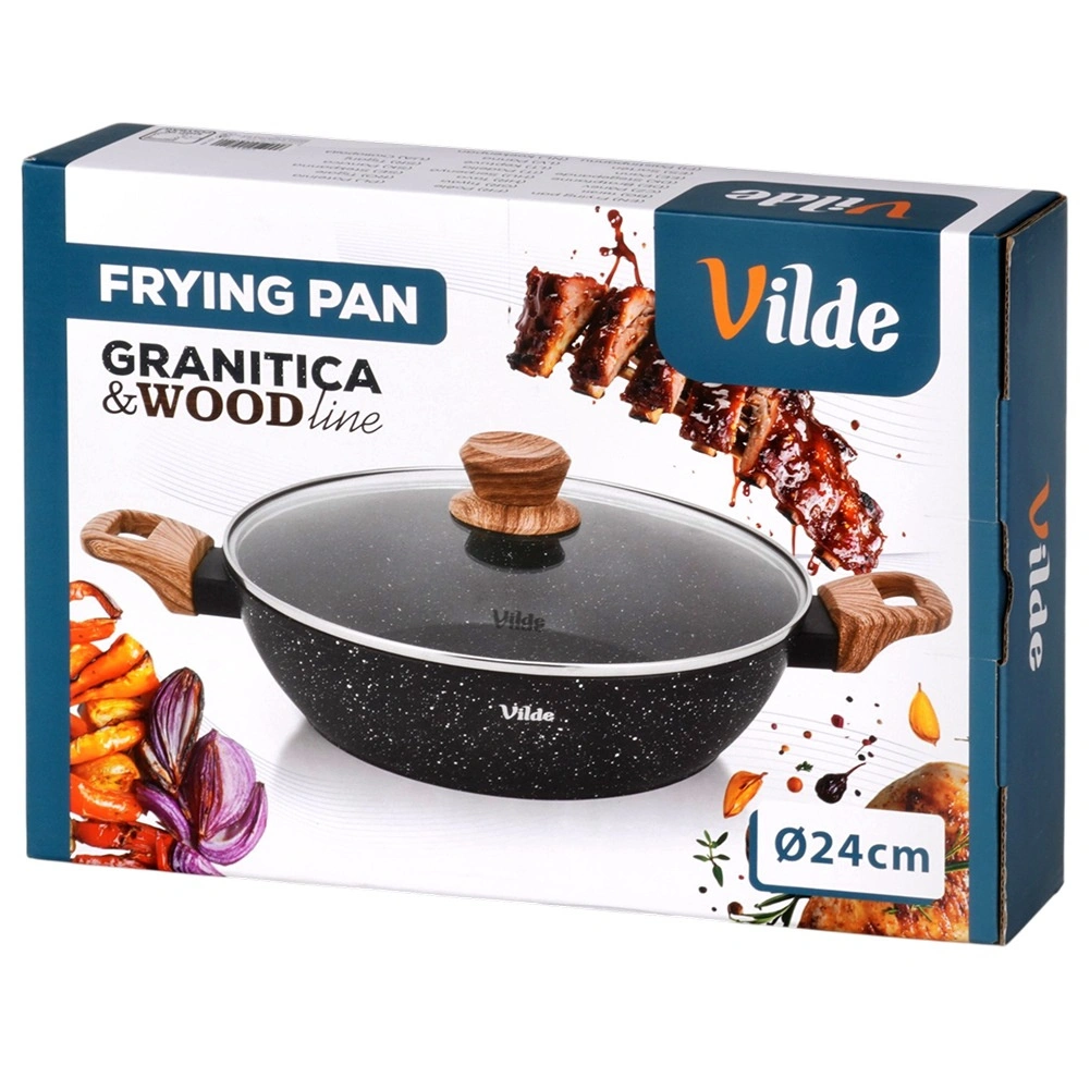 Praktikus, 2,2 l űrtartalmú mély serpenyő üvegfedővel a mindennapi főzéshez. A tapadásmentes gránit bevonatnak, az egyenletes hőelosztásnak és a fa hatású, soft touch fogantyúknak köszönhetően könnyedén készíthetőek sült, párolt és rakott ételek minimális zsiradékkal. A hőálló üveg fedő gőzszeleppel kényelmes főzésellenőrzést tesz lehetővé. Alkalmas indukciós, gáz-, elektromos és kerámia főzőlapokra, és mosogatógépben is tisztítható.