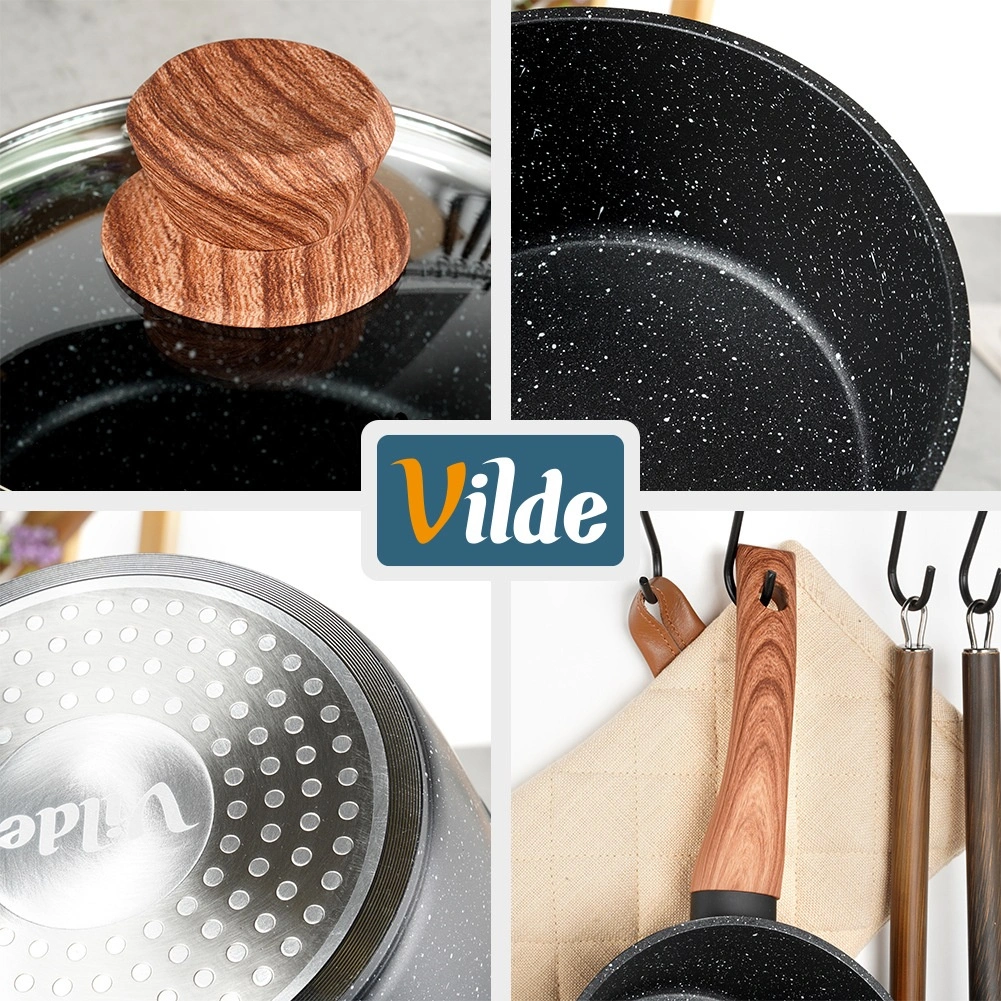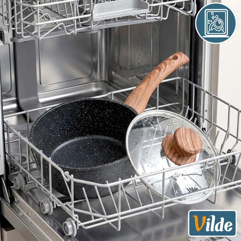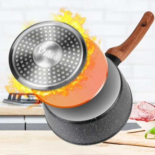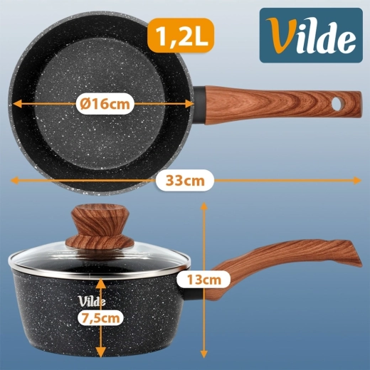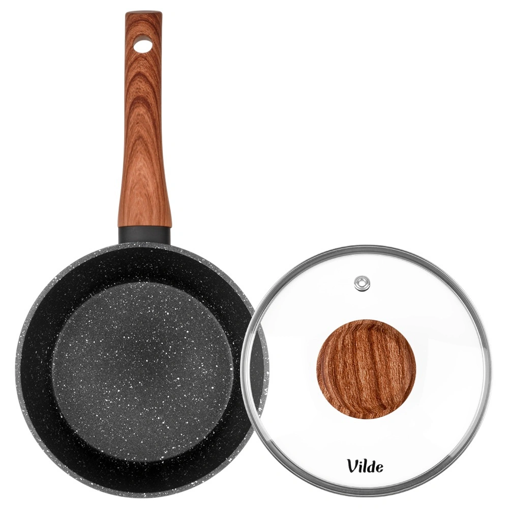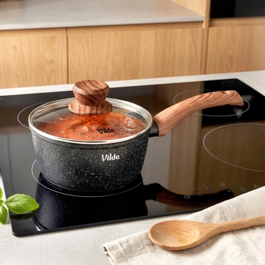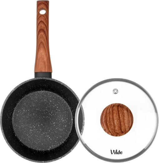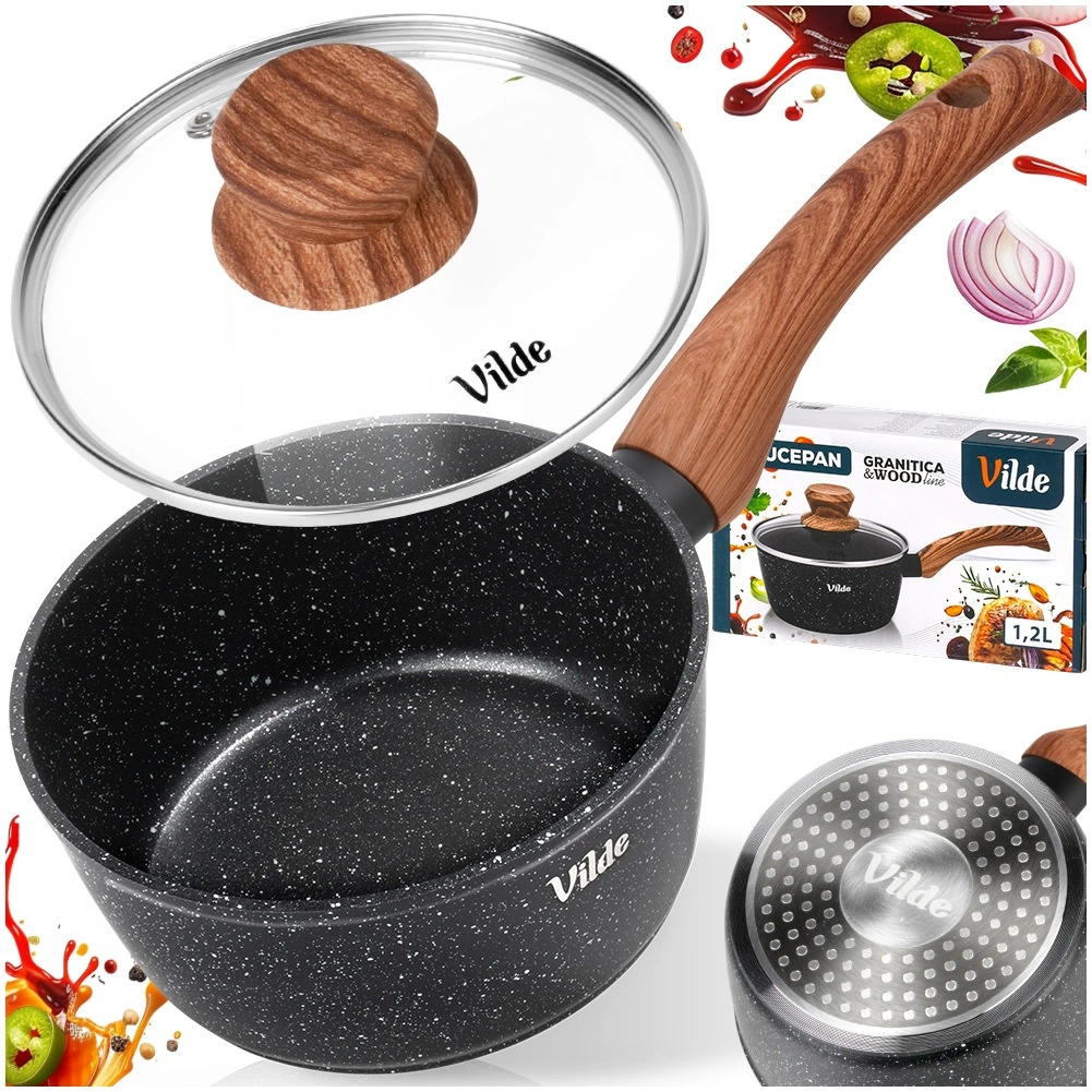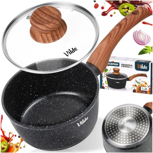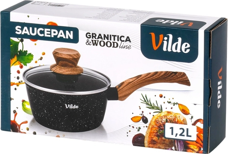 A Granitica Wood kollekció elegáns lábasa ideális a mindennapi, kisebb adagok főzéséhez – szószokhoz, kásákhoz, tej melegítéséhez vagy vaj olvasztásához. A gránit tapadásmentes réteg minimális olajjal történő főzést és a fogások könnyű kioldását biztosítja.