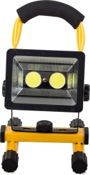 A kényelmes hordozhatóságot a puha, párnázott fogantyú és a stabil állvány biztosítja, 360°-os forgatási és dőlésszög-állítási lehetőséggel. A reflektor 3 világítási módot kínál (1 COB, 2 COB, stroboszkóp), az LED-ek élettartama pedig akár 50 000 óra.
