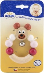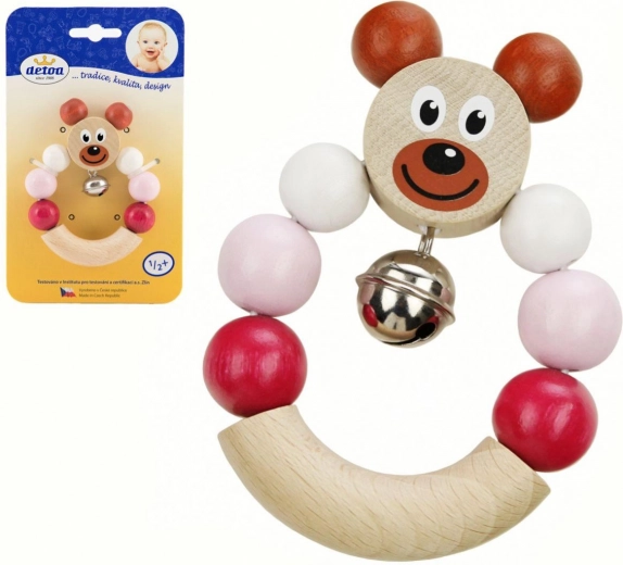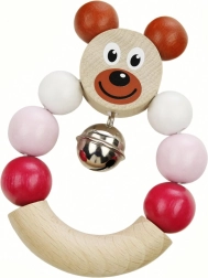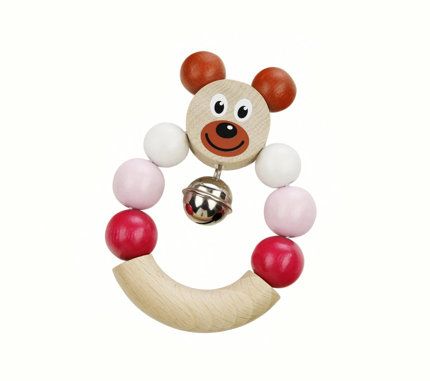 A rózsaszínű kis medvével díszített, aranyos fa csörgő minden babának örömet szerez. A beépített csengő finoman csilingel, a csörgő nagyon könnyű, és a 7 × 9 cm kompakt méretének köszönhetően remekül illik a kicsi kezekbe. A termék megfelel az EU szigorú játékbiztonsági követelményeinek, és rendelkezik a Biztonságos játék tanúsítvánnyal.