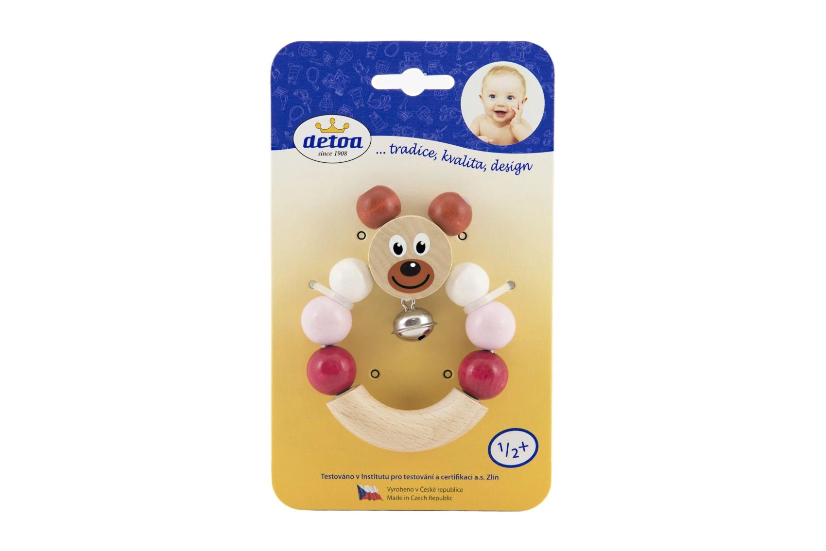 A rózsaszín Detoa medvés csörgő ideális első játék a hallás, a tapintás és a motoros készségek fejlesztéséhez. A csengő finom hangja felkelti a baba figyelmét, a kellemes anyagok és forma pedig a biztonságos és kényelmes fogást támogatják.