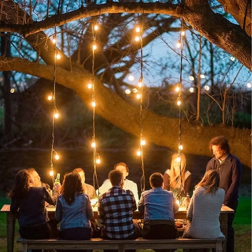A füzért egyszerűen kifeszítheted korlát mentén, pergolán vagy falon, és gyorsan kellemes fényzónákat alakíthatsz ki.