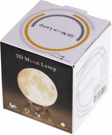 A holdas lámpán felfedezheti a különféle krátereket, akárcsak a valódi Holdon. A lámpa USB kábellel újratölthető, amely a csomag része. A csomagban található zsinórral fel is akaszthatja a Holdat. Az állvánnyal pedig éjjeliszekrényre helyezheti.