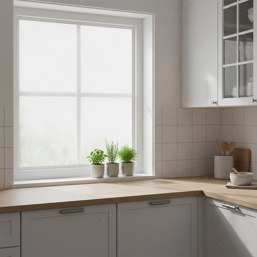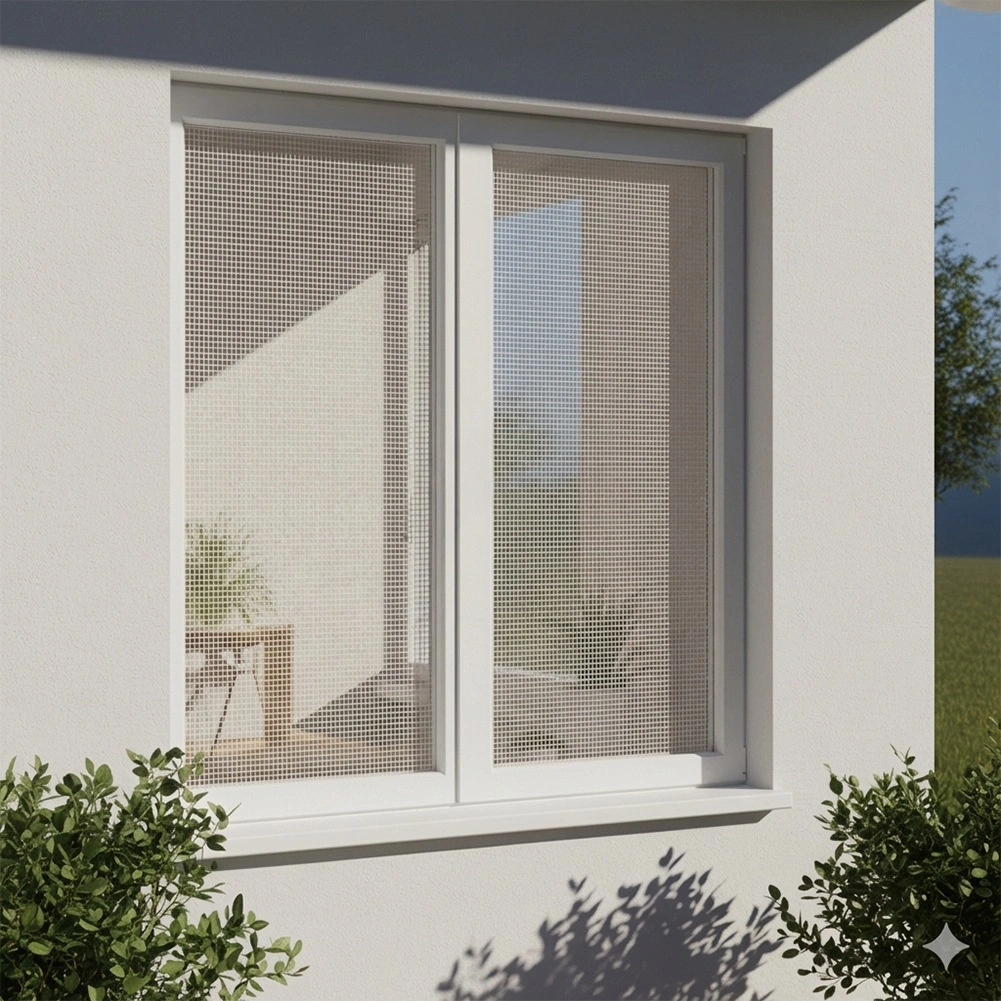 A sűrű, fehér szövés hatékonyan távol tartja a rovarokat, mégis átengedi a fényt és a levegőt, így megmarad a világosság és a kilátás.