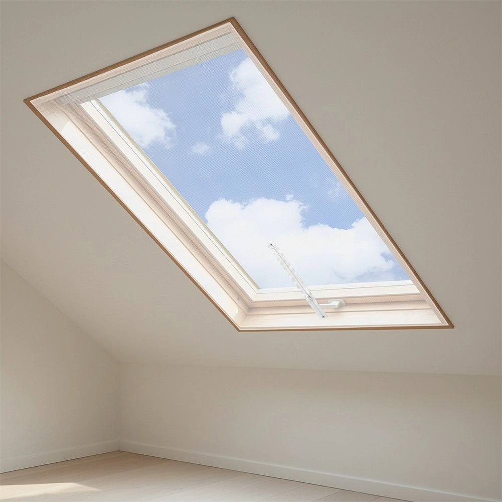 Tartsa a tetőteret szúnyog-, légy- és egyéb rovarmentesen. Ez a univerzális tetőablak rovarháló fehér színben tartós poliészterből készül, és pontos méretre szabható az igényei szerint. A finom háló hatékonyan blokkolja a rovarokat, miközben szabad lég- és fényáramlást biztosít.