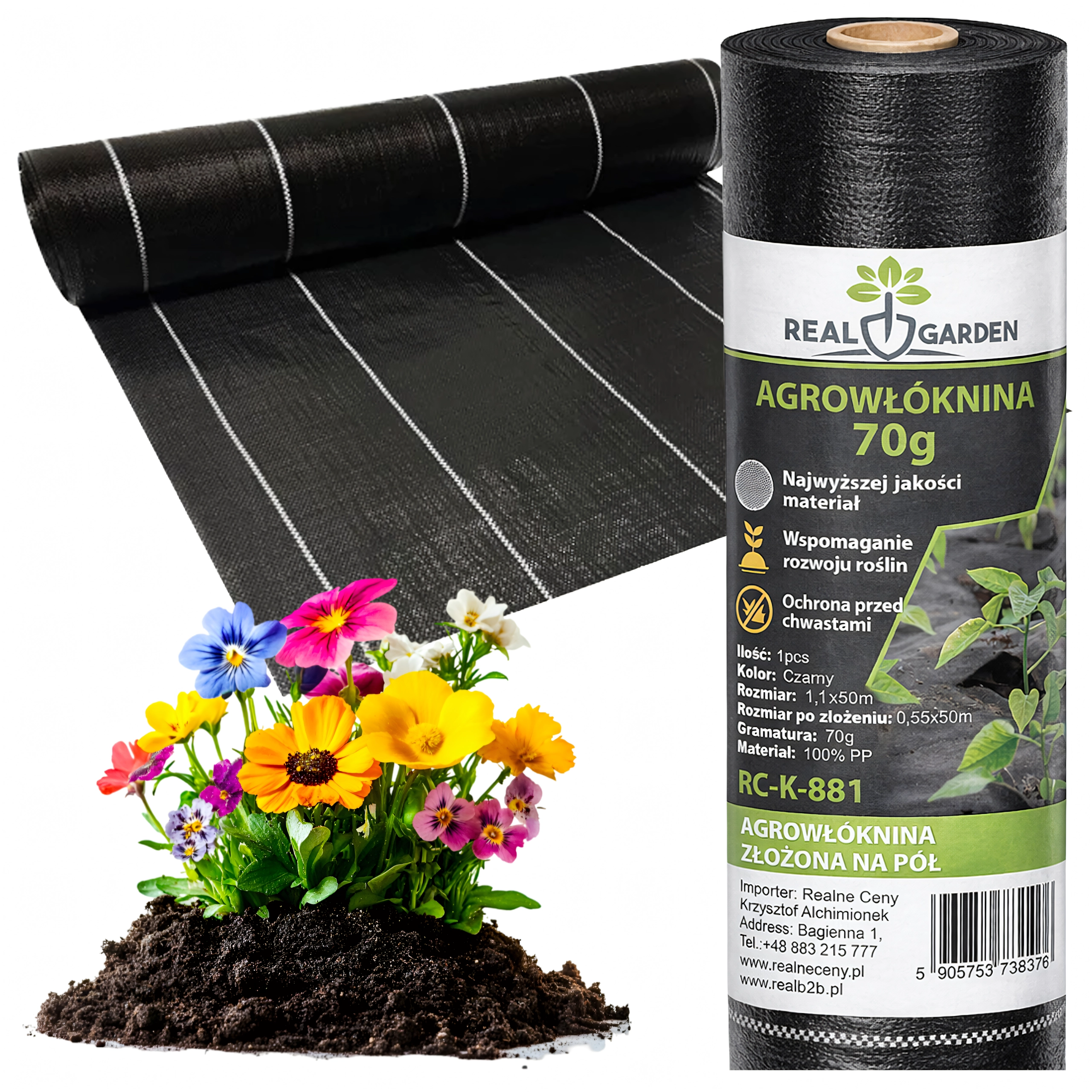 A tekercs félbehajtva kerül szállításra a könnyebb kezelhetőségért (az összehajtott tekercs szélessége 55 cm, kihajtva 110 cm). Az anyag UV-stabilizált a hosszú élettartamért napfényen, és szakadásálló. Alkalmas mulcskéreg, dekoratív kövek alá, valamint termesztőedények alátétjeként.