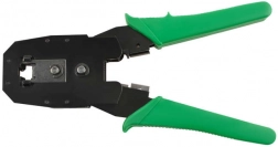 Krimpelő fogó 8P8C (RJ45), 6P6C (RJ12) és 6P4C (RJ11) csatlakozókhoz, cserélhető pengékkel a hosszú élettartamért, vágással és blankolással egyetlen szerszámban.