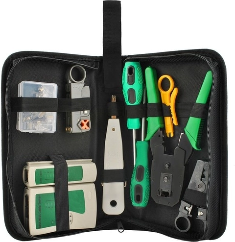 Ez a komplett hálózati szerszámkészlet ideális adat- és telefonos kábelezések szereléséhez, karbantartásához és diagnosztikájához. Számíthat a univerzális teszterre UTP/FTP/STP és RJ11/RJ12 esetén, a tartós krimpelő fogóra edzett acélból, valamint a precíz blankoló eszközökre a tiszta és gyors kábelvégződésekhez.