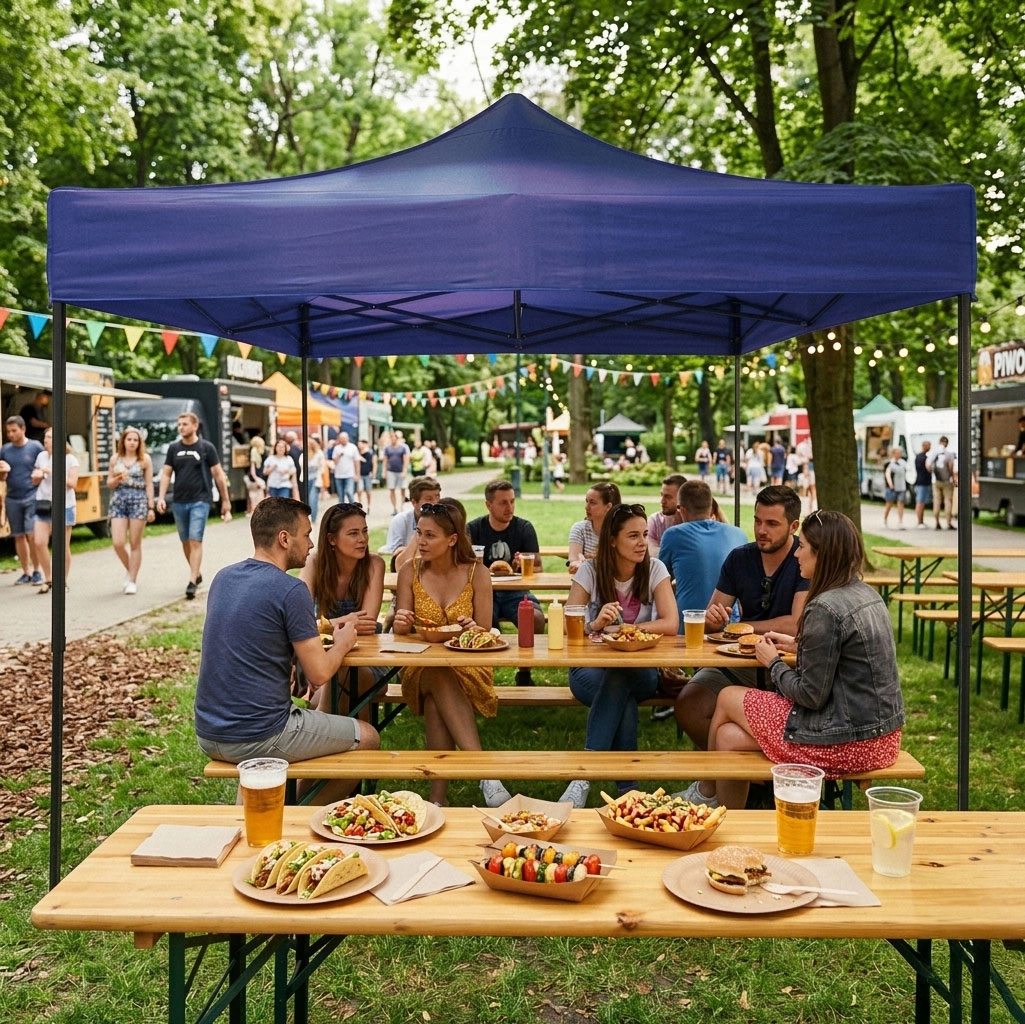 Átgondolt méreteinek köszönhetően pontosan illeszkedik a legtöbb 3 × 3 m-es kerti sátorhoz. A magas nedvességállóság és a könnyű karbantartás hosszú élettartamot garantál még gyakori szezonális használat mellett is. A kék kivitel remekül illik a kertbe, a teraszra és kültéri rendezvényekhez.