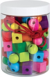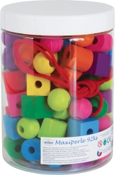 A színes, fa maxi gyöngyök ideális eszközt jelentenek a 3 évesnél idősebb gyermekek számára, akik szeretnék gyakorolni ügyességüket, miközben szórakoznak. Ez a készlet 92 darabot tartalmaz különböző formákban és színekben, amelyeket a mellékelt erős zsinórra lehet felfűzni.