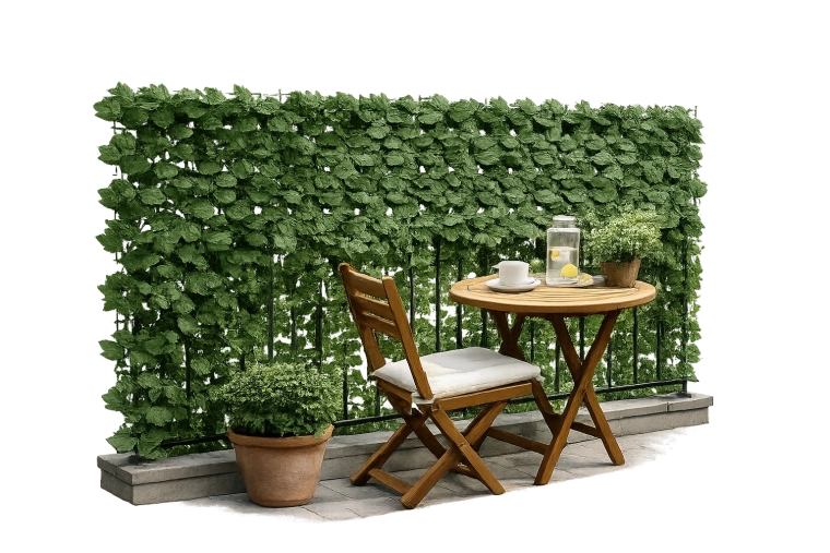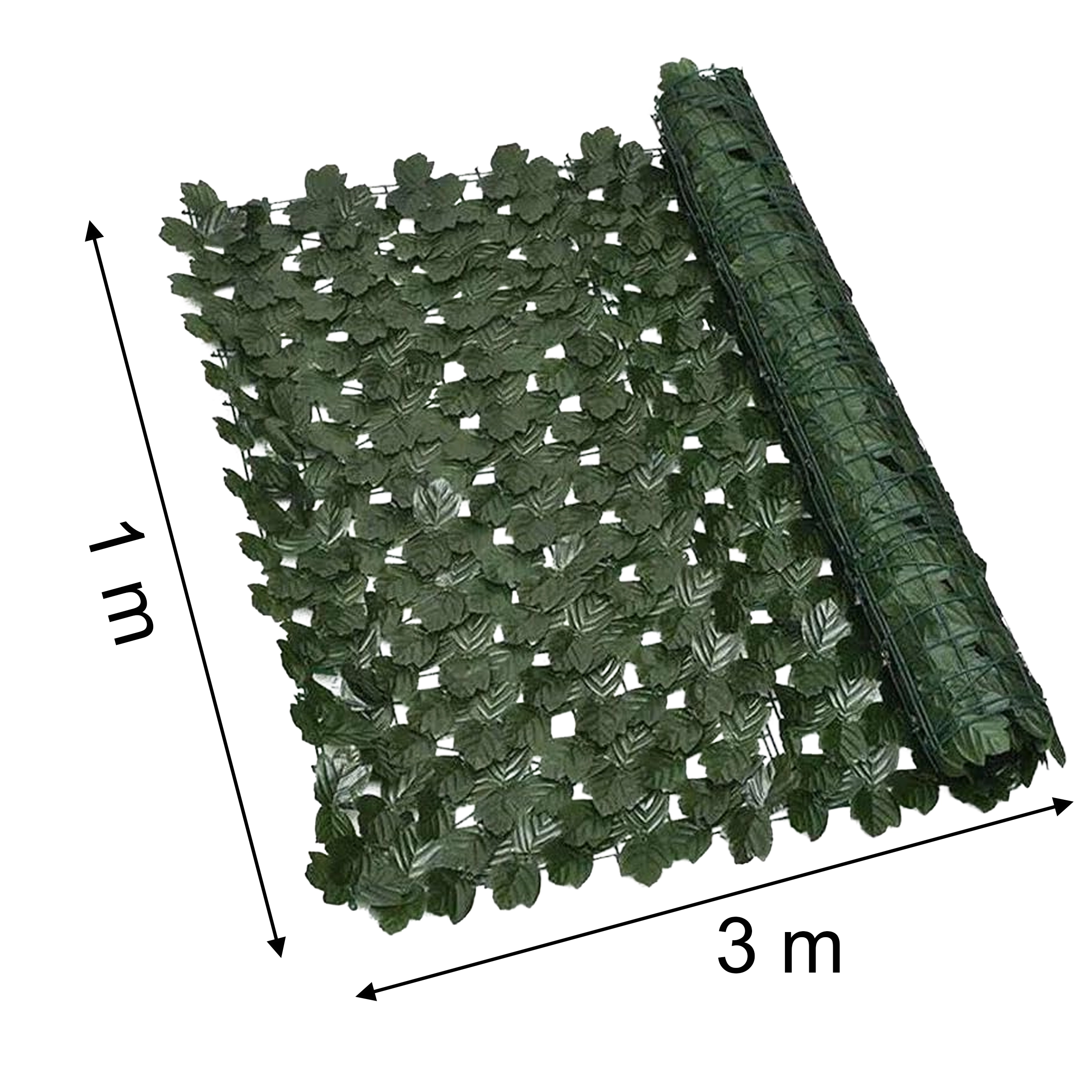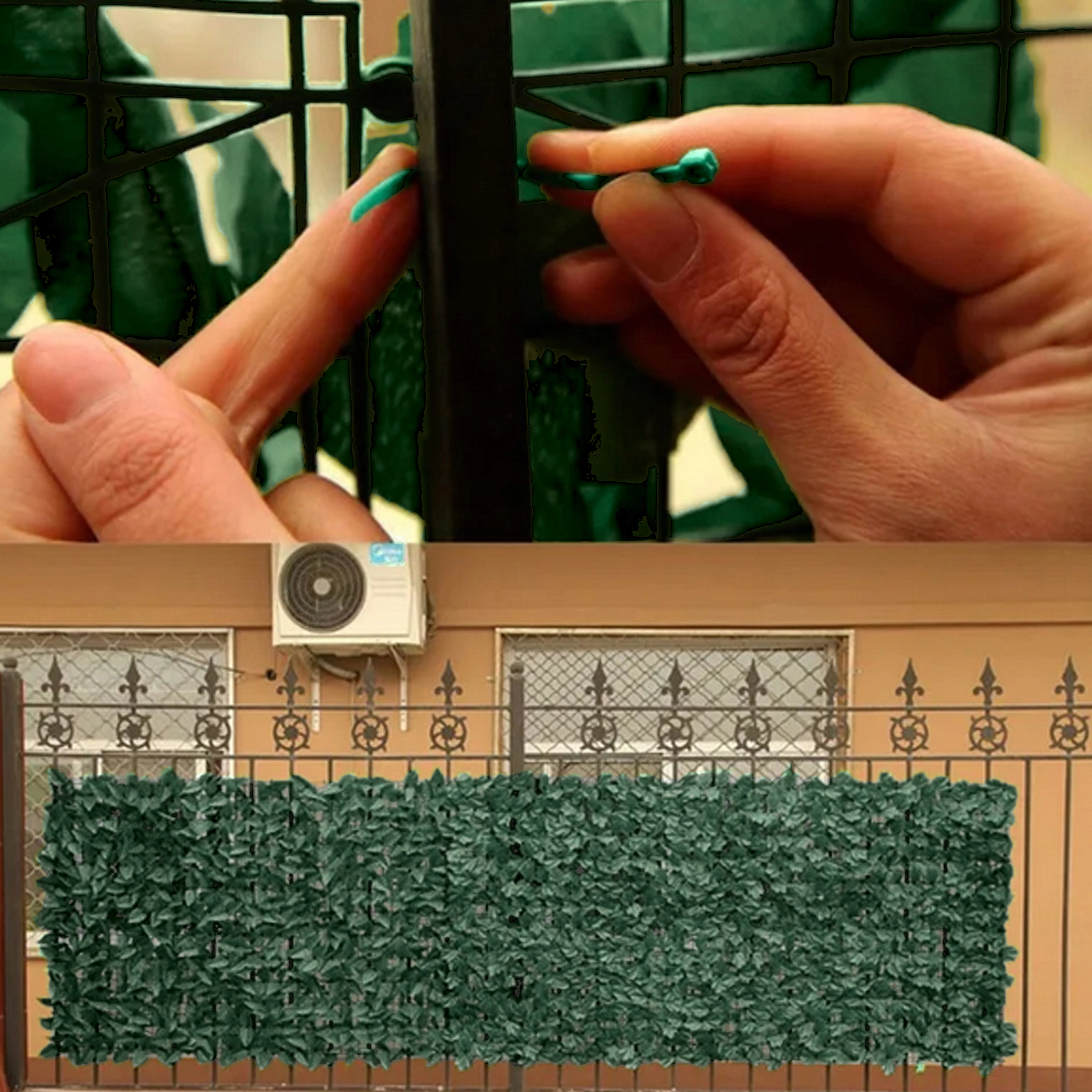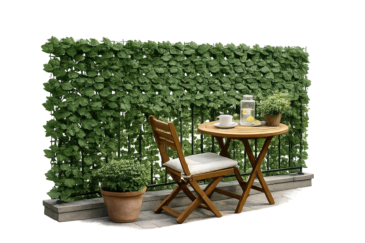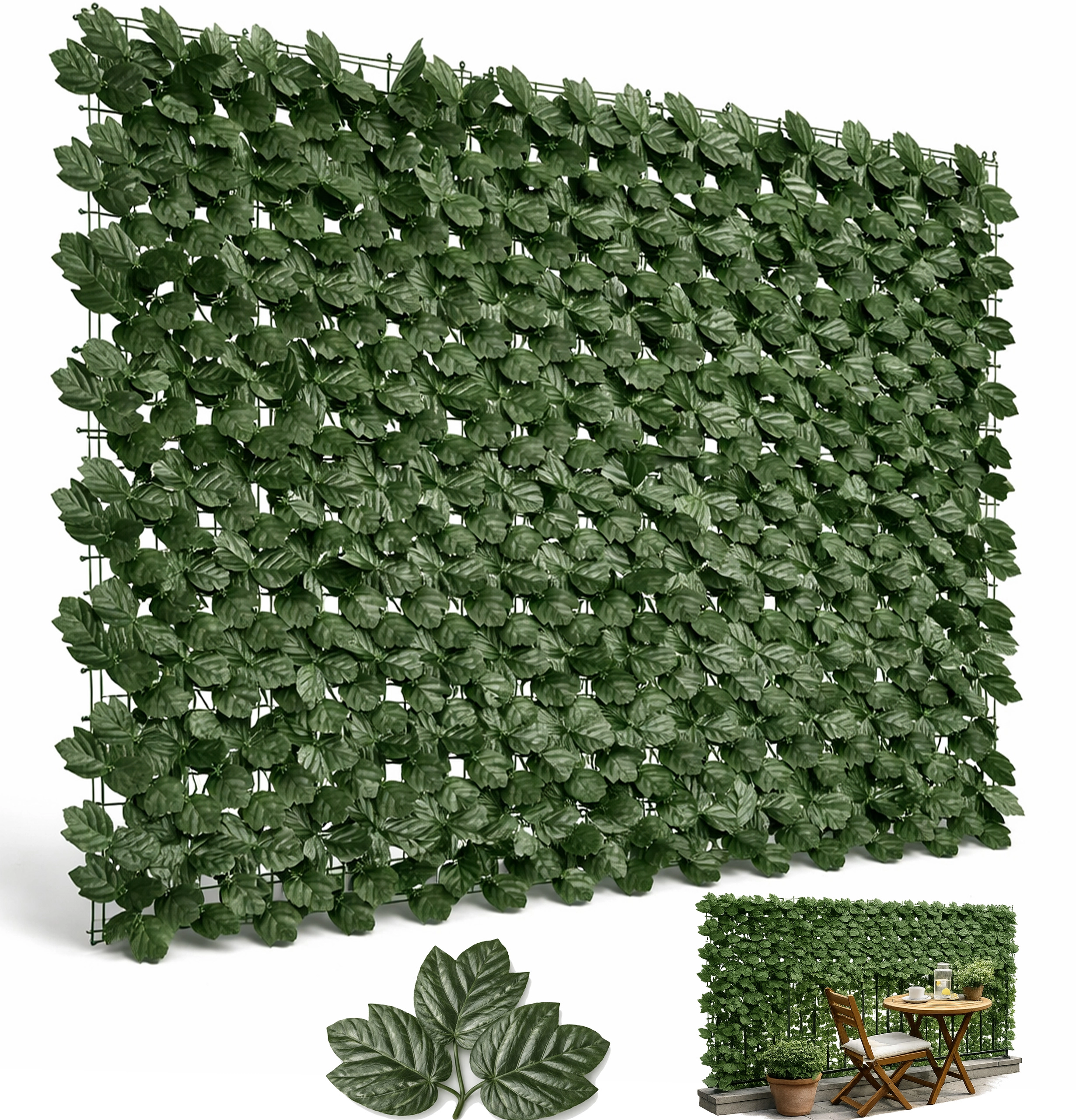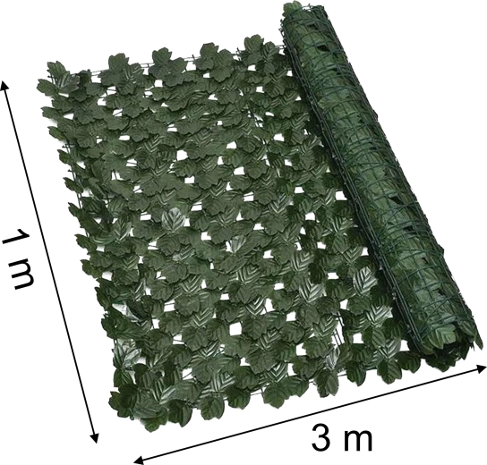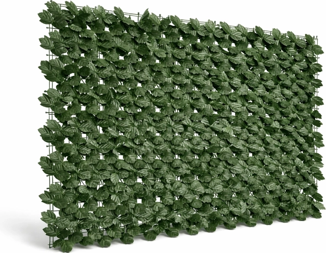 A mű borostyán sövény ideális választás a magánszféra megteremtéséhez erkélyen, teraszon és a kertben. A rugalmas hálóra sűrűn rögzített levelek természetes hatású zöld falat alkotnak, amely eltakarja a csúnyább felületeket, és egyben csökkenti az átláthatóságot kerítésen vagy korláton keresztül.
