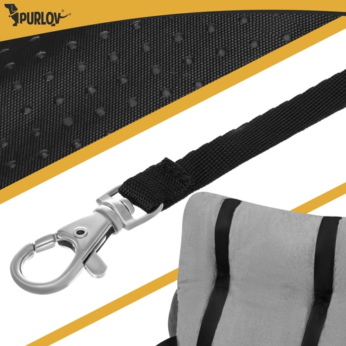 A szürke, fészek-szerű PURLOV autós fotel a biztonságot, a kényelmet és a könnyű telepítést ötvözi. A magas, párnázott falak biztonságérzetet adnak a kisállatnak, míg a vízálló és csúszásgátló alsó rész szilárdan a helyén tartja az ülést. A belső póráz a hámhoz rögzítéshez segít korlátozni a mozgást fékezéskor és kanyarodáskor.