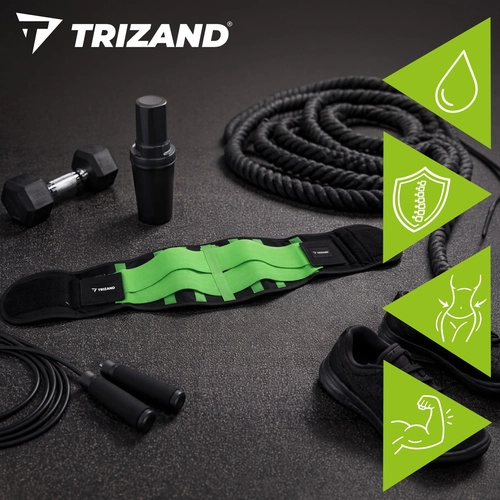 A TRIZAND neoprény karcsúsító öv segít megtartani a hőt a has és derék környékén, így elősegíti az intenzívebb izzadást mozgás közben. Széles kialakítása kényelmesen idomul a testhez, a masszív tépőzárnak köszönhetően pedig a kompresszió könnyen, igény szerint állítható. A belső oldalon található légáteresztő hálós zseb javítja a szellőzést, és melegítő vagy stabilizáló betét elhelyezésére is alkalmas.