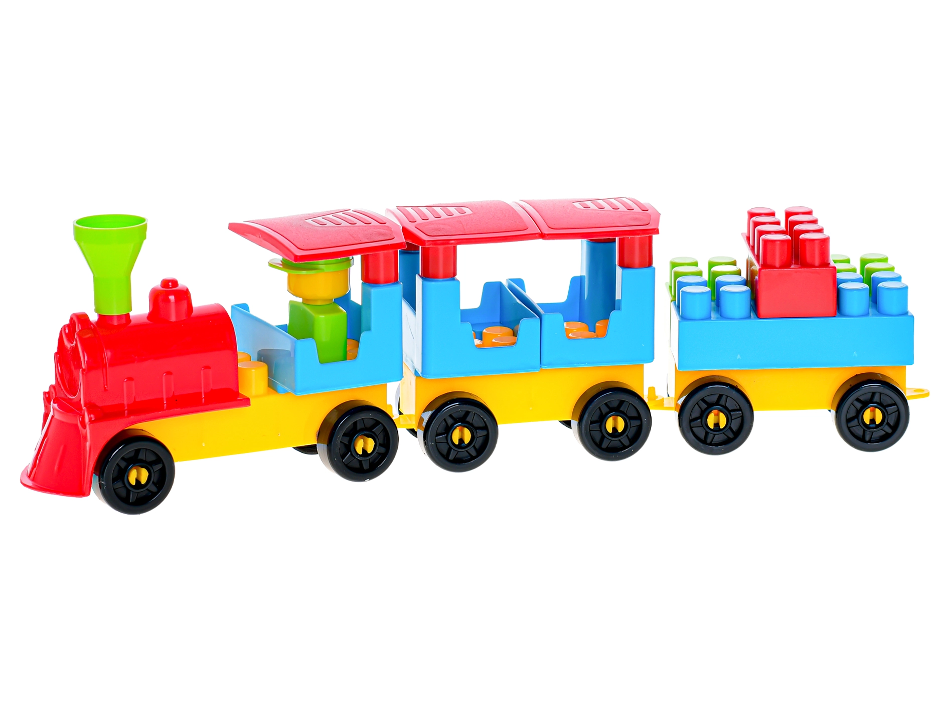 A készlet tartós és biztonságos műanyagból készült, amely kellemes fogású a kis kezeknek. A kb. 34 cm hosszúra összeszerelt vonat ideális a szabad játékhoz sík felületen. A szett 3 éves kortól ajánlott, és fejleszti a szem-kéz koordinációt, a türelmet és a térbeli képzelőerőt.