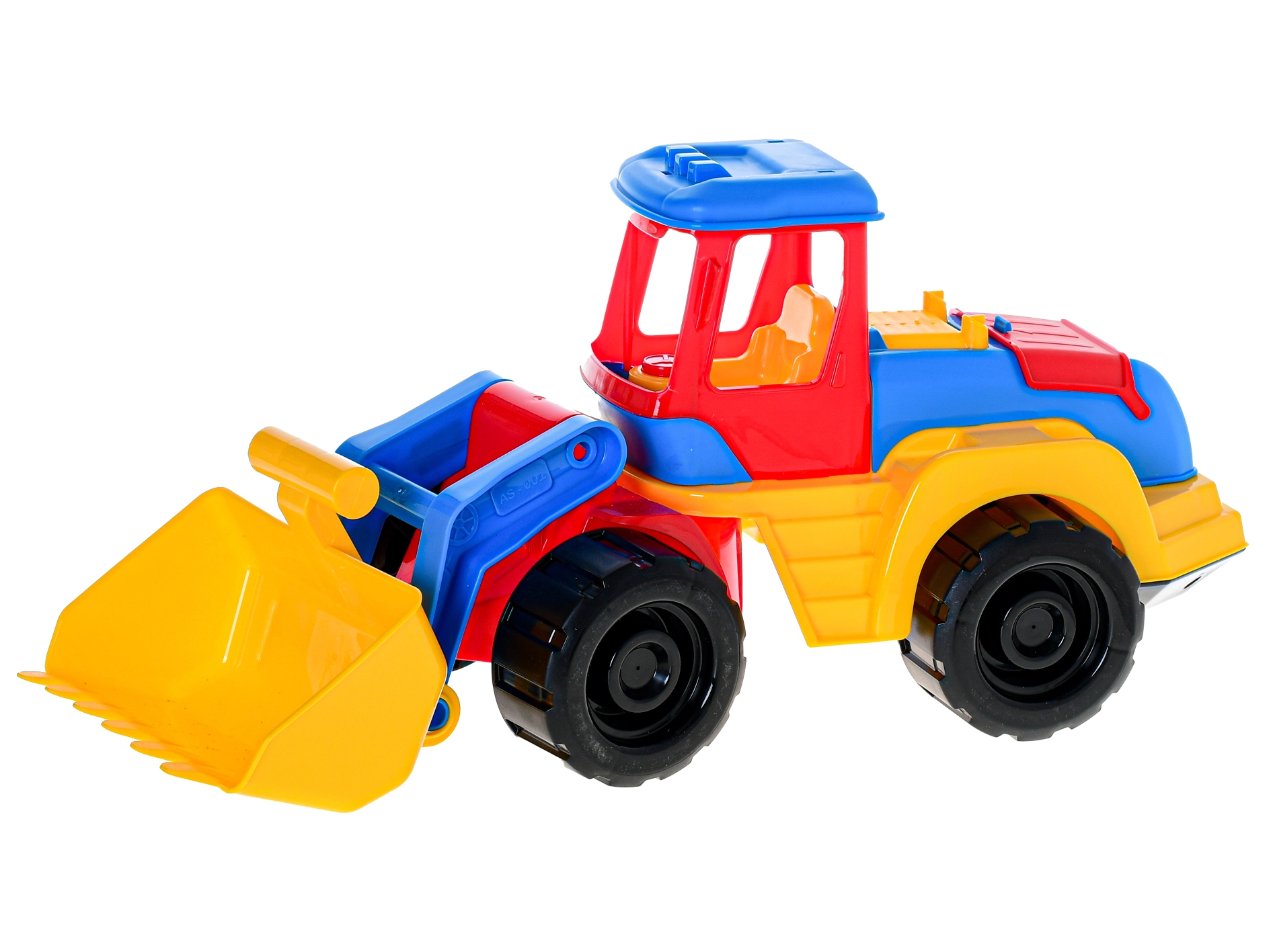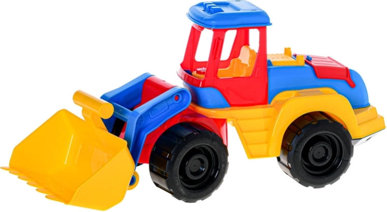 Ez a masszív rakodó traktor remek társ a kreatív játékhoz. A mozgatható első kanál segítségével a gyerekek könnyedén felszedhetnek homokot, kavicsot vagy kockákat, miközben fejlődik a finommotorikájuk és a képzelőerejük. A nagy terepkerekek egyenletes mozgást biztosítanak homokon és padlón egyaránt.