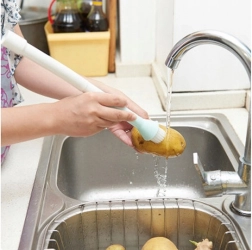 Praktikus csaptelep-kefe fej, amely megkönnyíti a mindennapi konyhai takarítást. A rugalmas szilikon fejnek köszönhetően a legtöbb csaptelepre illeszkedik, és lehetővé teszi a hatékony súrolást lábasoknál, serpenyőknél és fedőknél is. A sűrű sörték megbirkóznak a makacs szennyeződésekkel, és elérnek a nehezen hozzáférhető helyekre is.