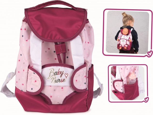 A babahordozót tárolóhellyel kényelmesen lehet hátul hordani, és a húzózsinóroknak és a tépőzárral rögzített fedőnek köszönhetően nincs veszély, hogy útközben valami elvész. Az oldalán palackzseb található a babák számára. A hátizsák pántjai állíthatóak, és gyermek méretéhez igazíthatóak.