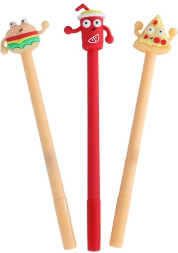 Minden toll végét hasábburgonya-, pizza-, hamburger- vagy italformájú díszítés zárja – ideális azoknak, akik feldobnák iskolai és irodai felszerelésüket, vagy ötletes ajándékot keresnek. A 36 darabos csomag nagyszerű iskoláknak, csoportoknak vagy apró jutalomnak.
