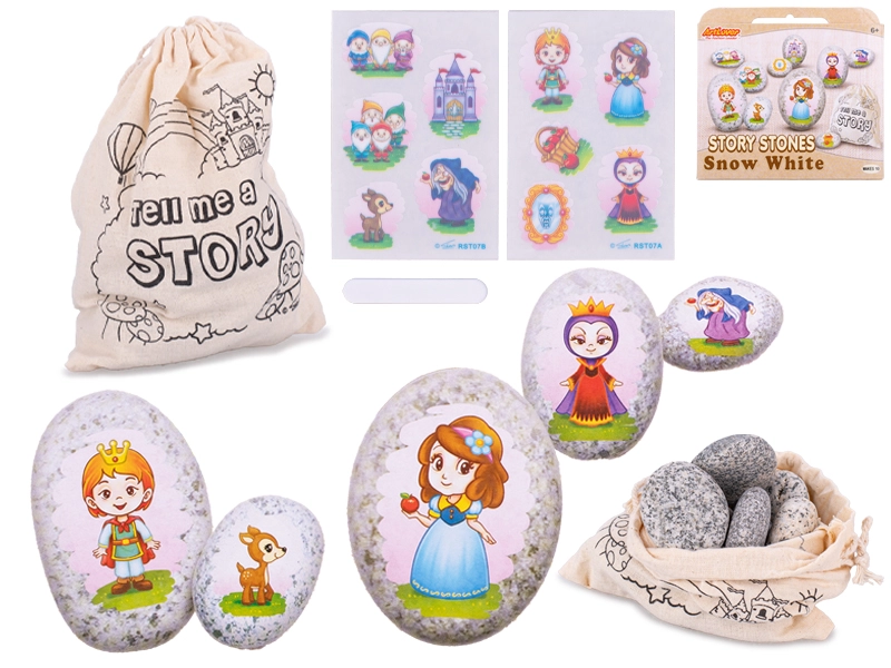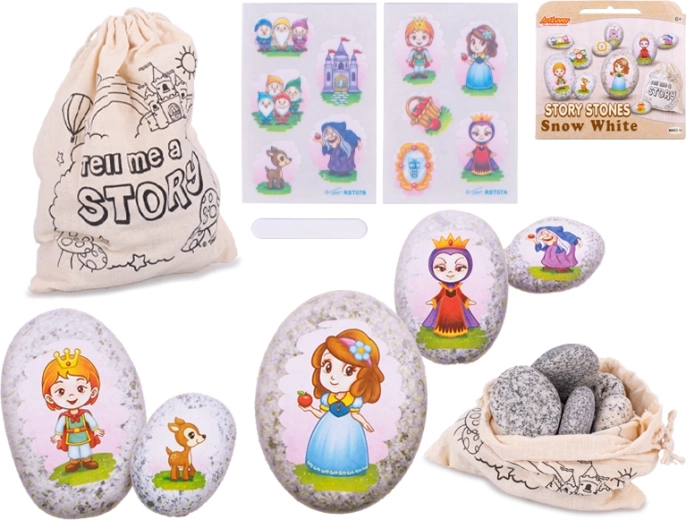A készlet 10 gondosan válogatott természetes kavicsot tartalmaz HÓFEHÉRKE mesefiguráit és elemeit ábrázoló matricákkal. A gyerekek újraélhetik a kedvenc történetet, vagy megalkothatják a saját változatukat – ideális otthoni játékhoz, iskolai tevékenységekhez és utazáshoz.