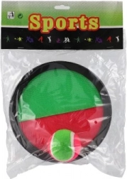 A csomagban két kerek tárcsát és egy, színekben harmonizáló labdát találsz – kibontás után azonnal indulhat a játék.