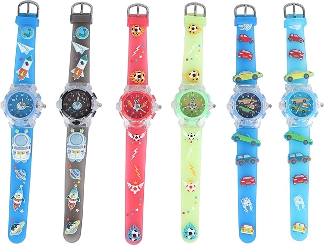 Stílusos fiú analóg karórák fénnyel, melyek örömet szereznek a kis felfedezőknek és sportolóknak. Kínálnak jól olvasható analóg időkijelzést, beépített fényt a jobb láthatóságért és könnyű, strapabíró műanyag kivitel gondoskodik a kényelmes viseletről. Kiválóan segítik az óraolvasás tanulását, és magukkal ragadó űr-, autó- és focimotívumokkal készülnek hat vidám színben.