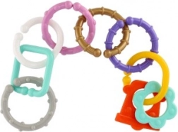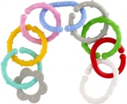 Színes összekapcsolható karikák és formák újszülött kortól, amelyek egyesítik az összekapcsolást és a csörgőt egyben. Tartós műanyag, könnyű összekapcsolás és pehelykönnyű kialakítás támogatja a finommotorikát, a kézügyességet és a logikus gondolkodást. Látvány- és tapintásélményben gazdag játék, amely újra és újra szórakoztat otthon és útközben is.